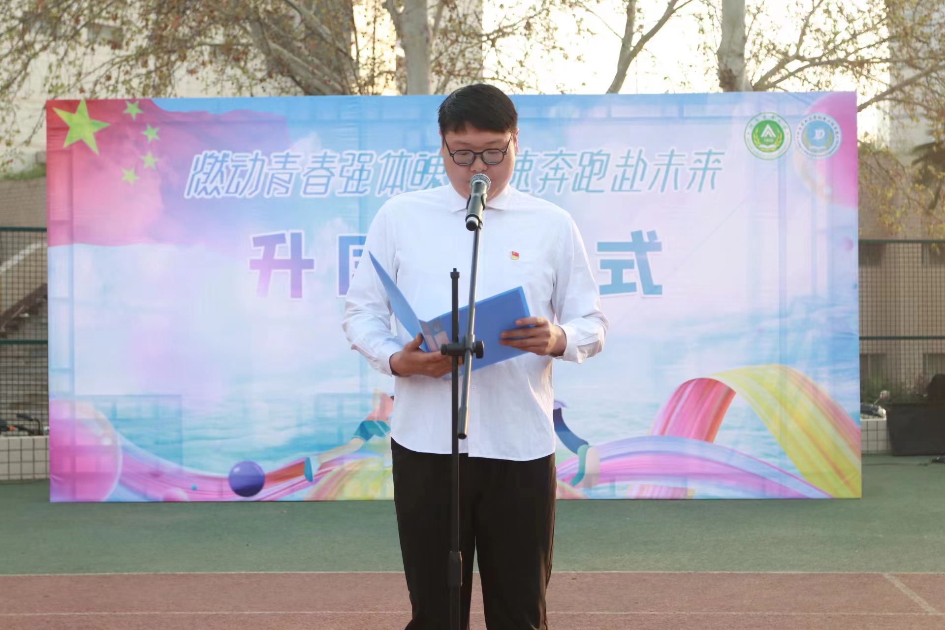 在文化路校区举行的“燃动青春强体魄,加速奔跑赴未来”升国旗仪式。