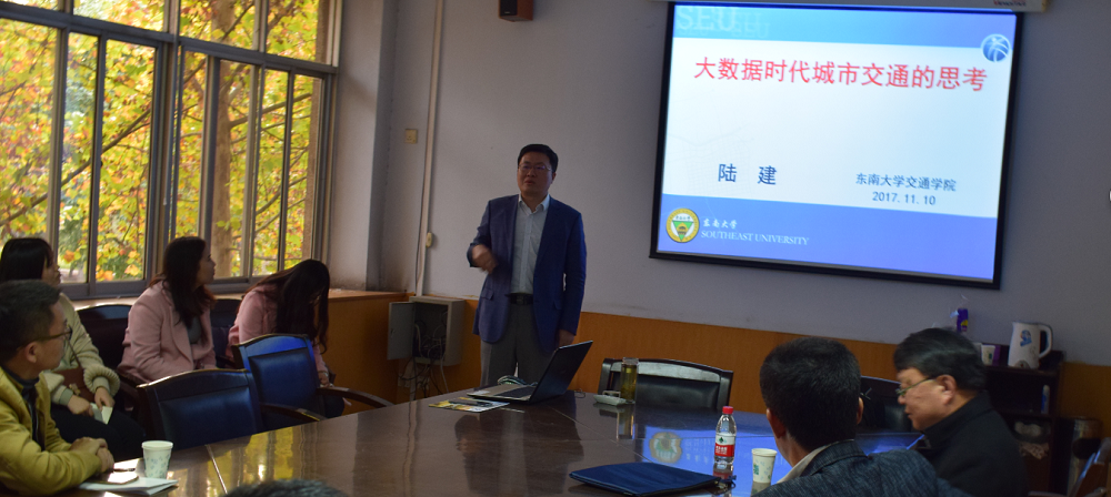 报告会中,陆建教授从市民出行、交通预管等方面分析了大数据对城市交通的重要性,并从大数据与城市交通的密切程度、交通系统中产生的大数据内容、城市交通问题与大数据研究需求、大数据在城市交通领域的应用等方面做了具体阐述。陆建教授还介绍了在当前道路设施资源有限的情况下,如何对交通大数据数据进行分析利用,以实现城市交通规划即高效又安全的设计目标。最后,陆教授指出,城市交通的发展重要的不仅是技术,更是应用技术变革管理的决心,科技工作者的任务就是为政府提供更加高效的管理决策。