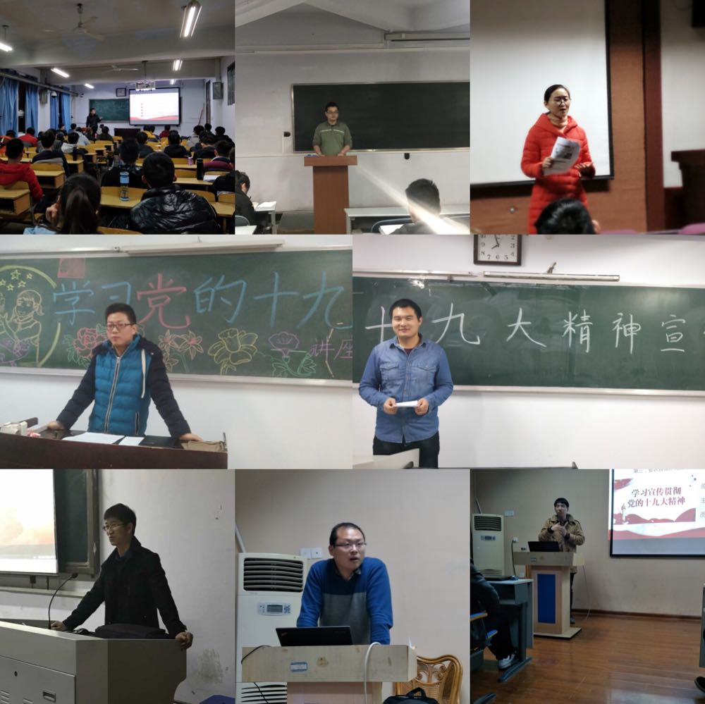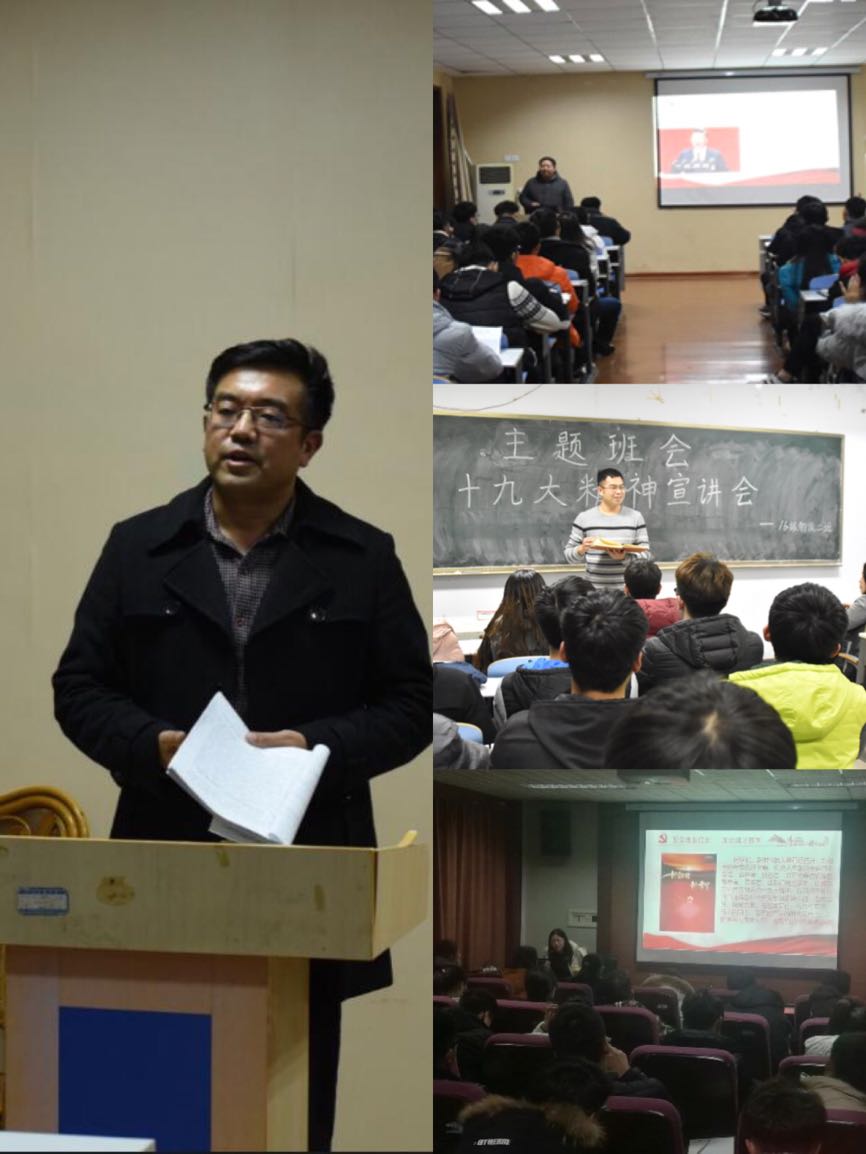 政工干部及专业辅导员积极开展十九大精神宣讲活动。此次活动旨在将十九大精神深进班级、进宿舍、进头脑,使同学们真正地理解领悟十九大精神,积极实践十九大精神。