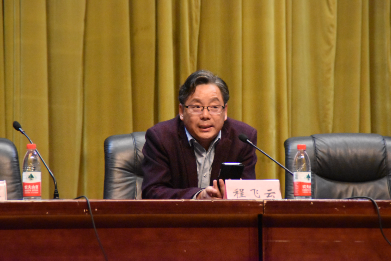 程飞云从自己的家乡环境和初高中求学经历谈起,程飞云朴实的称自己就是“山里孩”,在贫困的山村环境中,7、8岁就开始做繁重的农活,因生计所迫,高中更是边干活边学习,在山上搬石头,开拖拉机,数次身陷险境。生活的苦难和他的付出坚持深深打动了在场每一位听众,在大学期间,他从修鞋开始,走上创业之路,毕业后不断创业,不惧失败,现已拥有伟雄科技等三家河南行业龙头企业。程飞云告诫同学,要先做人,再做事,一定要诚实守信,践行社会主义核心价值观,从一点一滴做起,紧跟时代,抓住机遇,建功立业。