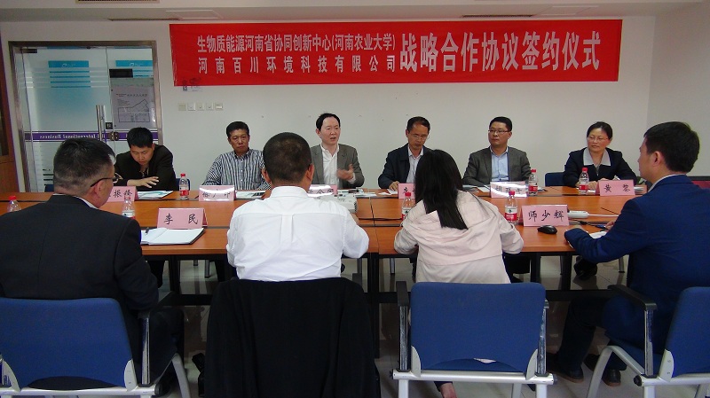 副总经理张琼介绍了河南百川环境科技有限公司的基本情况和在可再生能源等方面的技术和经验。公司在垃圾填埋沼气发电投产电厂数量及装机容量均为本行业国内第一,并将业务发展到马来西亚等国。张锋总裁介绍了公司在病死猪资源化处理和县域农业废弃物处理领域开展情况,希望与生物质能源河南省协同创新中心在相关领域深化合作,协同开展技术研发和工程化应用。