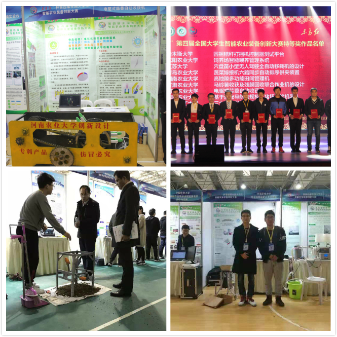 的三支参赛队伍均斩获佳绩。余永昌、屈哲老师指导的项目电驱式蒜薹自动收获机斩获特等奖;张秀丽、李连豪老师指导的项目烟草旋耕施肥起垄开沟机荣获二等奖;张秀丽、李慧琴老师指导的项目一种仿生有机废物翻推机荣获二等奖。竞赛期间,院党委书记李世欣、余永昌教授等教师亲临赛场看望参赛学生并对作品进行指导,参赛师生在竞赛中也与兄弟院校相互交流学习。通过参赛提升学生专业知识、动手能力、设计水平能力,对促进学院智能农业装备的发展起到积极作用。
