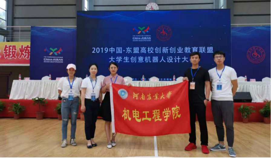 参赛队取得了优异的成绩。创新创意组比赛中,张红梅副教授指导的“全液压驱动高地隙履带无线遥控自动行走作业车”(学生:姬红、何豪、司冰权)和“小区育种测产装置”(学生:刘婉茹、李康、王洋)分别获得一等奖和优秀奖,屈哲老师指导的“电驱式蒜薹收获机”(学生:刘龙、孙雅欣、李文涛)获得二等奖,何勋副教授指导的“玉米秸秆皮穰叶分离装置”(学生:吕严柳、周正、蒋睿)获得三等奖;“全液压驱动高地隙履带无线遥控自动行走作业车”和“电驱式蒜薹收获机”参加创新能力组比赛获银奖,“小区育种测产装置”获铜奖。张红梅、何勋和屈哲3位老师获“优秀指导老师”称号,我校获“优秀组织奖”。