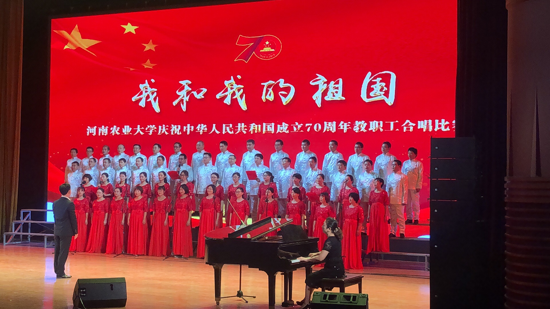 9月29日晚,学校大礼堂内华灯璀璨、歌舞欢腾。为热烈庆祝中华人民共和国成立70周年,由校工会举办的“我和我的祖国”教职工合唱比赛在这里隆重上演。校党委书记魏蒙关,校党委副书记、工会主席李成吾,副校长尹新明与两千余名师生共同参加了教职工合唱比赛。学院领导班子高度重视,院分工会精心组织排练,教职工用心合唱《东方之珠》,唱出了大家对祖国的美好祝愿,荣获合唱比赛一等奖。