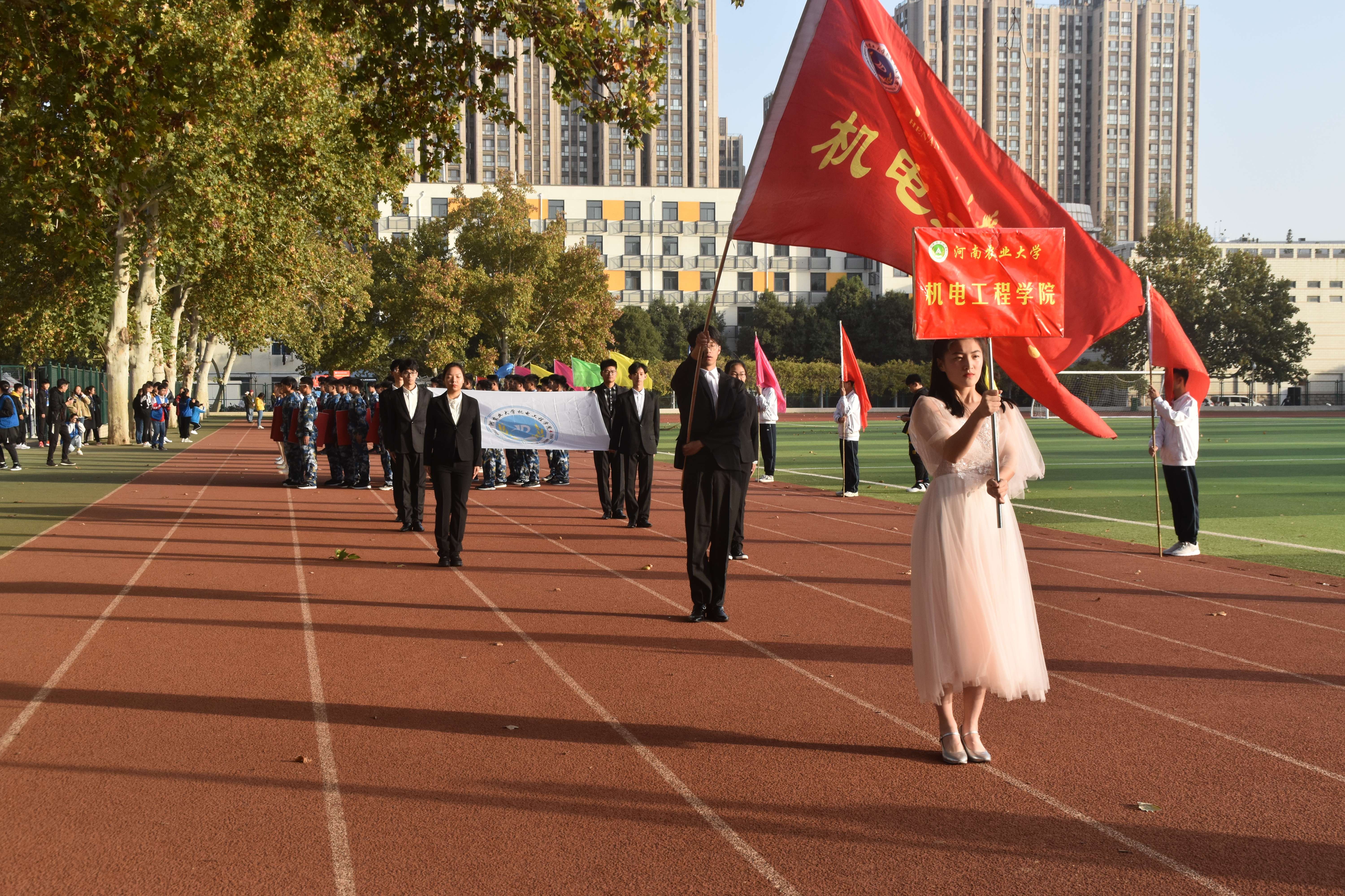 上午8时,伴随着激昂澎湃的乐曲,旗手们庄严地护卫着国旗、院旗,彩旗队、各专业本科代表、研究生代表队以及院教职工代表队组成的25个方阵依次入场,各方阵迈着整齐的步伐从主席台走过,他们精神饱满,昂首阔步,展示出机电青年的朝气与活力。在庄严肃穆的升旗仪式后,胡建东代表学院致开幕词,他表示,学院坚持以立德树人为根本,以学院建设为龙头,以专业建设为基础,以人才培养为重点,重视体育运动,推动学院发展。希望全院以此为契机,沐浴阳光,走进操场,以健康的体魄、阳光的心态为实现中华民族伟大复兴的中国梦而不懈奋斗。运动员代表孟奎和裁判员代表体育学院范玉辉老师庄严宣誓,李世欣宣布运动会开幕。