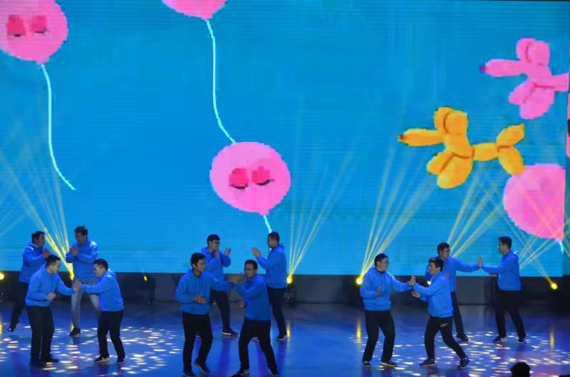 此次元旦晚会分为“青春激荡篇”、“奋勇争先篇”和“未来可期篇”三个篇章,从多角度、多种表演形式展开,为广大师生展现一场精彩纷呈的视听盛宴。晚会以热血阳刚的舞蹈《机电空间》拉开帷幕,张扬自信、激情澎湃的演员身上,映衬着机电学院学生的昂扬向上的精神风貌。曲建华、黄黎老师的《向上的光》,歌颂追梦少年的努力和执著;诗朗诵《机电荣光》,生动讲述疫情严峻形势下,机电师生在教学、在志愿服务等方面以身作则,力所能及为疫情防控做出贡献;由巴基斯坦教师纳迪姆·塔希尔一家演唱的歌伴舞《恭喜恭喜》,带来了外国友人及助理班主任对我们新一年的美好期许与祝愿,紧接着学院领导班子、各系主任等主要领导老师戴着喜庆吉祥的大红围巾,为师生送上最诚挚的节日祝福,使整场晚会的气氛推向高潮。情景剧《最可爱的人》,讲述抗美援朝战争中的故事,使同学们不忘历史,激发爱国情怀;教师舞蹈《烟雨行舟》,婀娜多姿的身影中,将成人小说