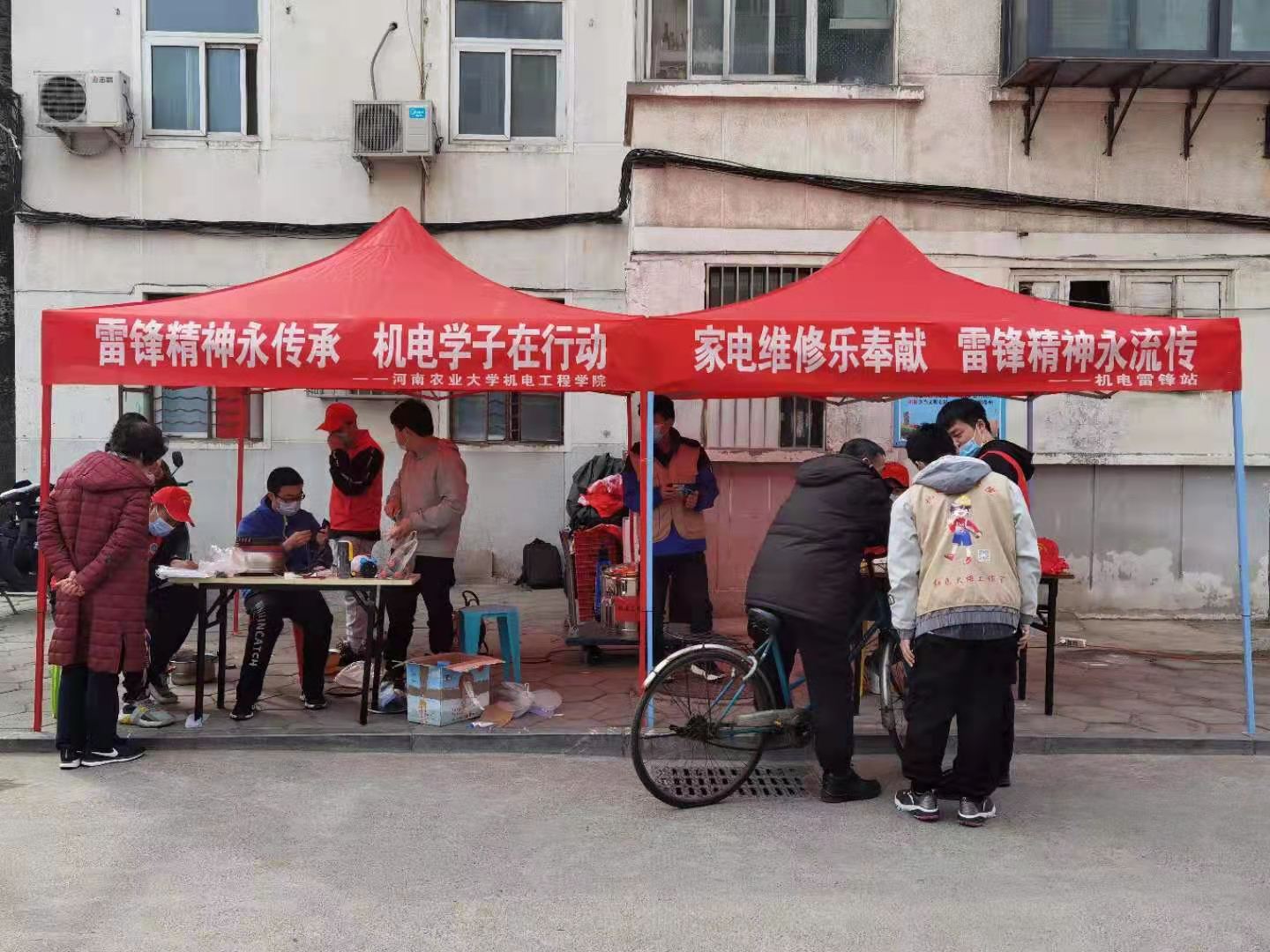 组织雷锋站志愿服务团前往于文化路校区农大一区家属院进行雷锋日家电维修志愿服务活动。院党委书记李世欣、院长胡建军、团委书记黄笑、农机系党支部书记李赫等院领导老师现场参与指导活动开展。