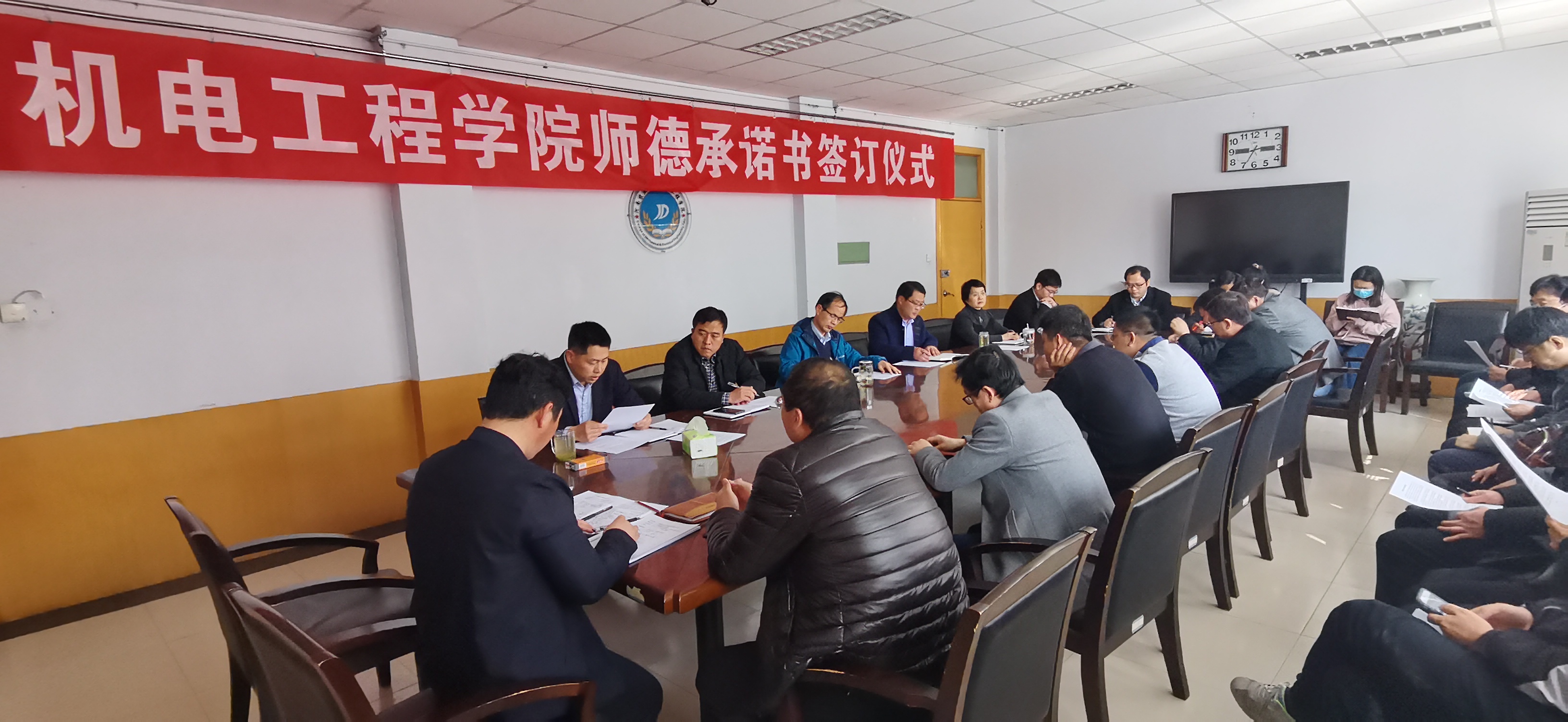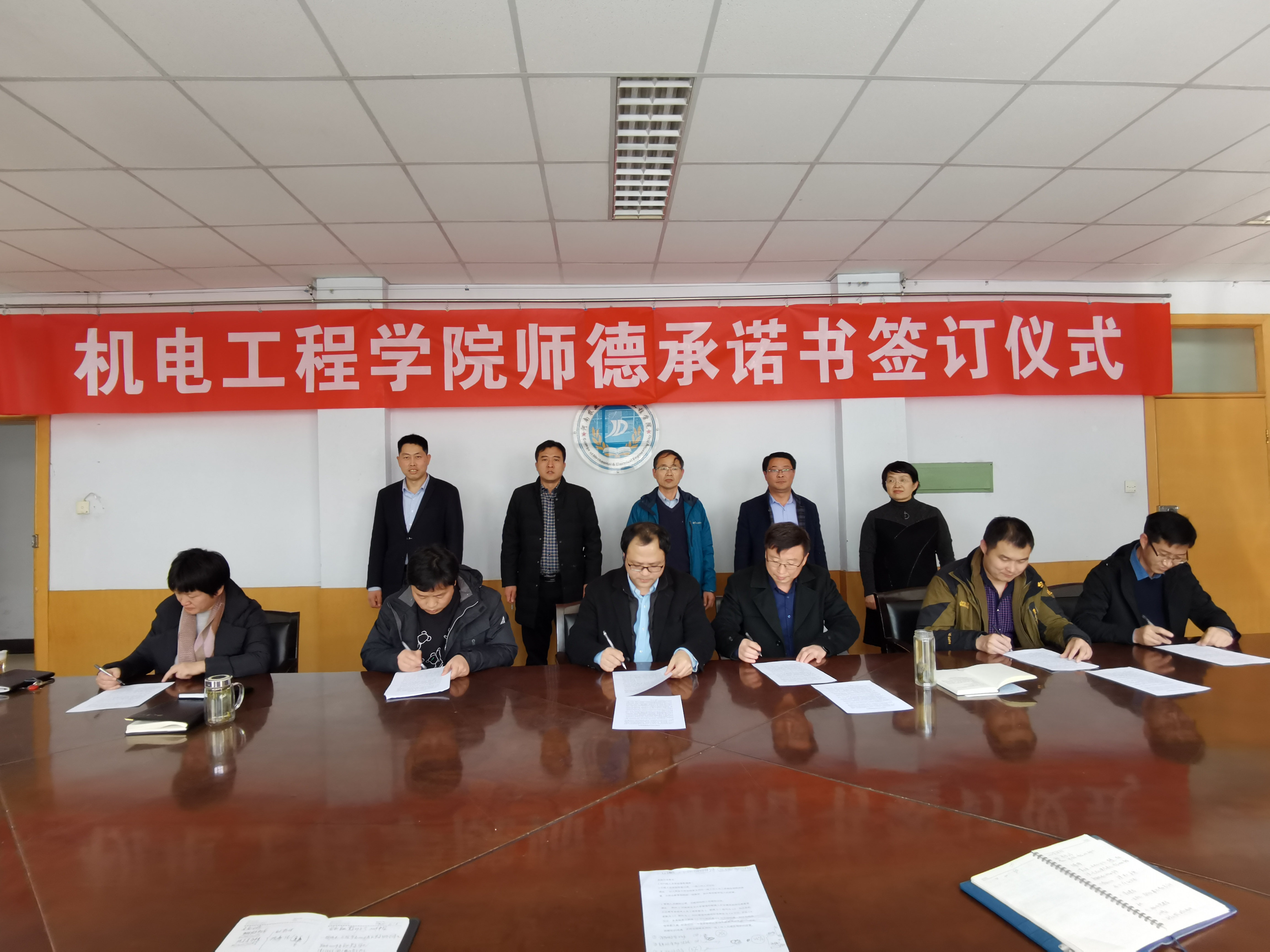 师德承诺书》。随后,学院领导班子成员在承诺书上签字,学院各单位主要负责人在学院领导注视下签字,全院教职工依次在师德承诺书上签字。