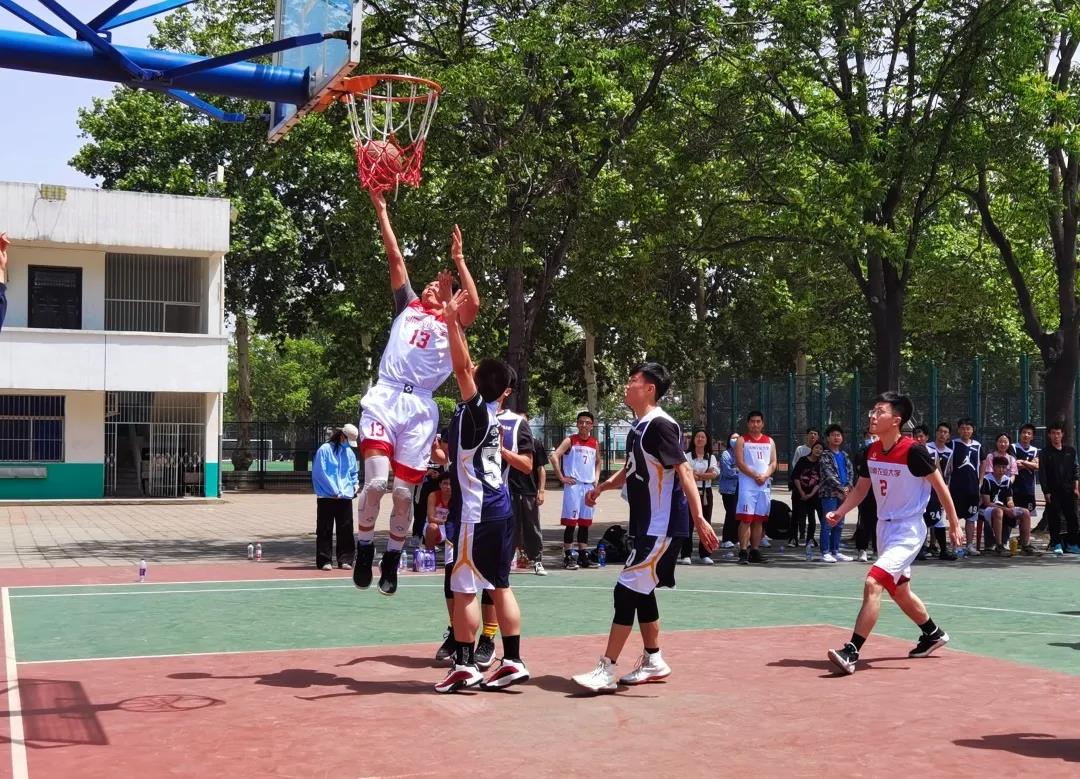 在篮球场举办“青春飞扬,梦想启航”毕业生师生篮球赛。