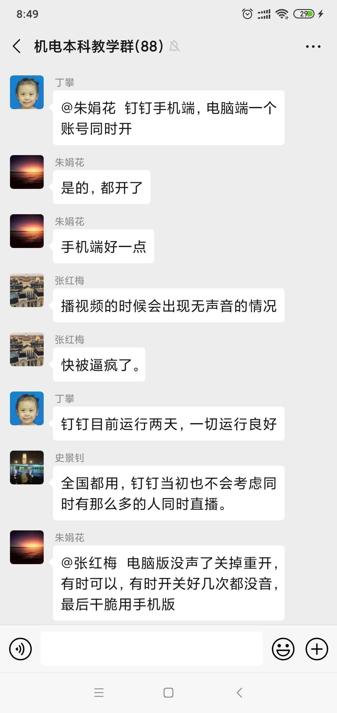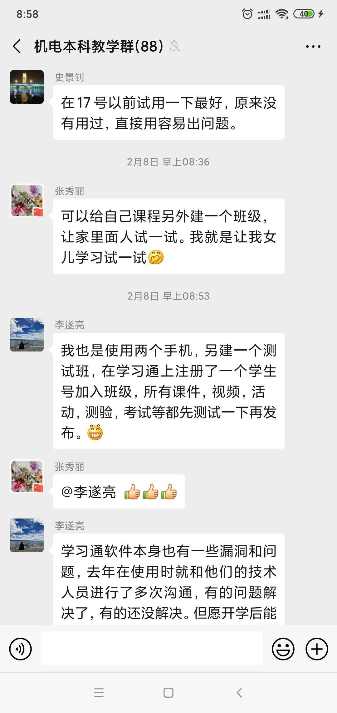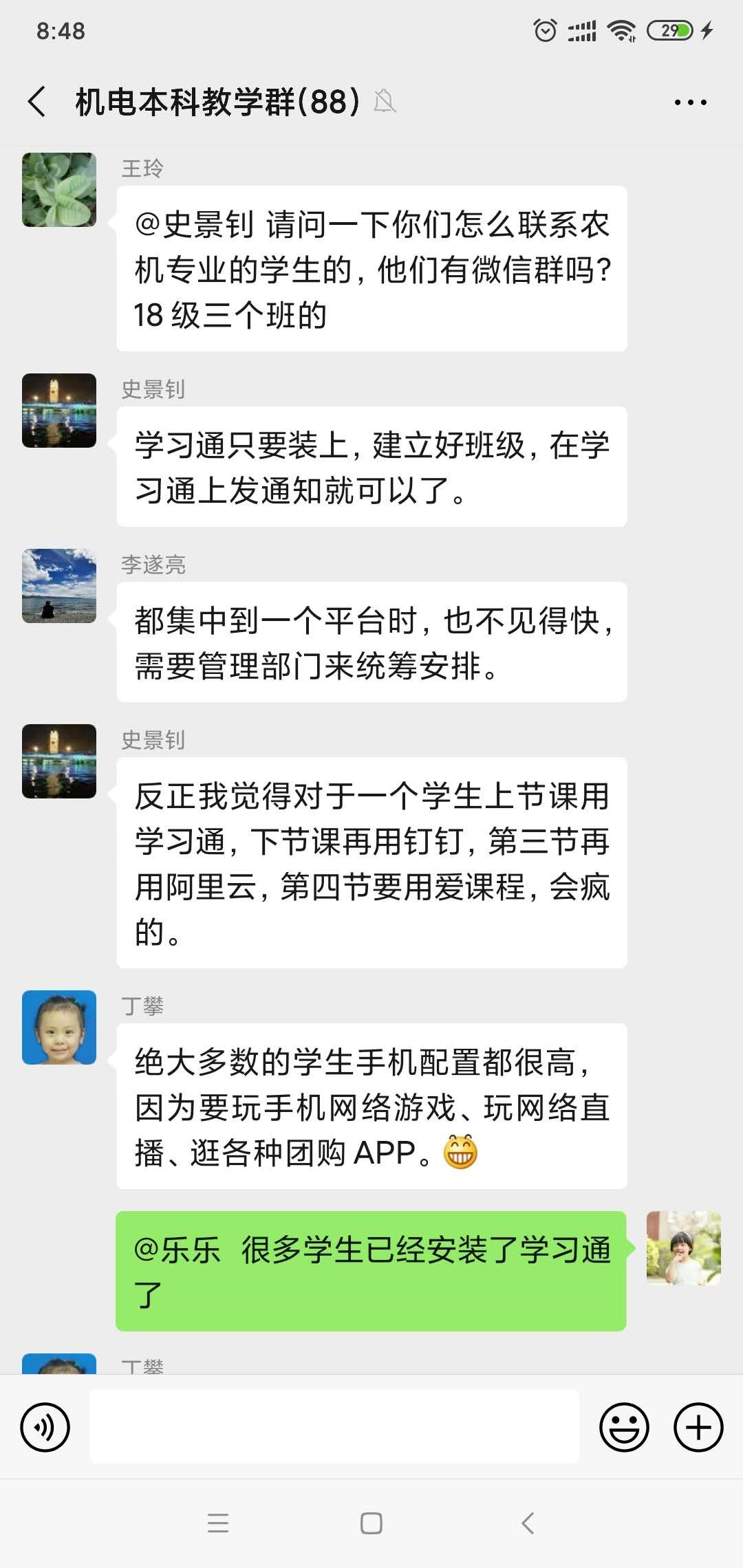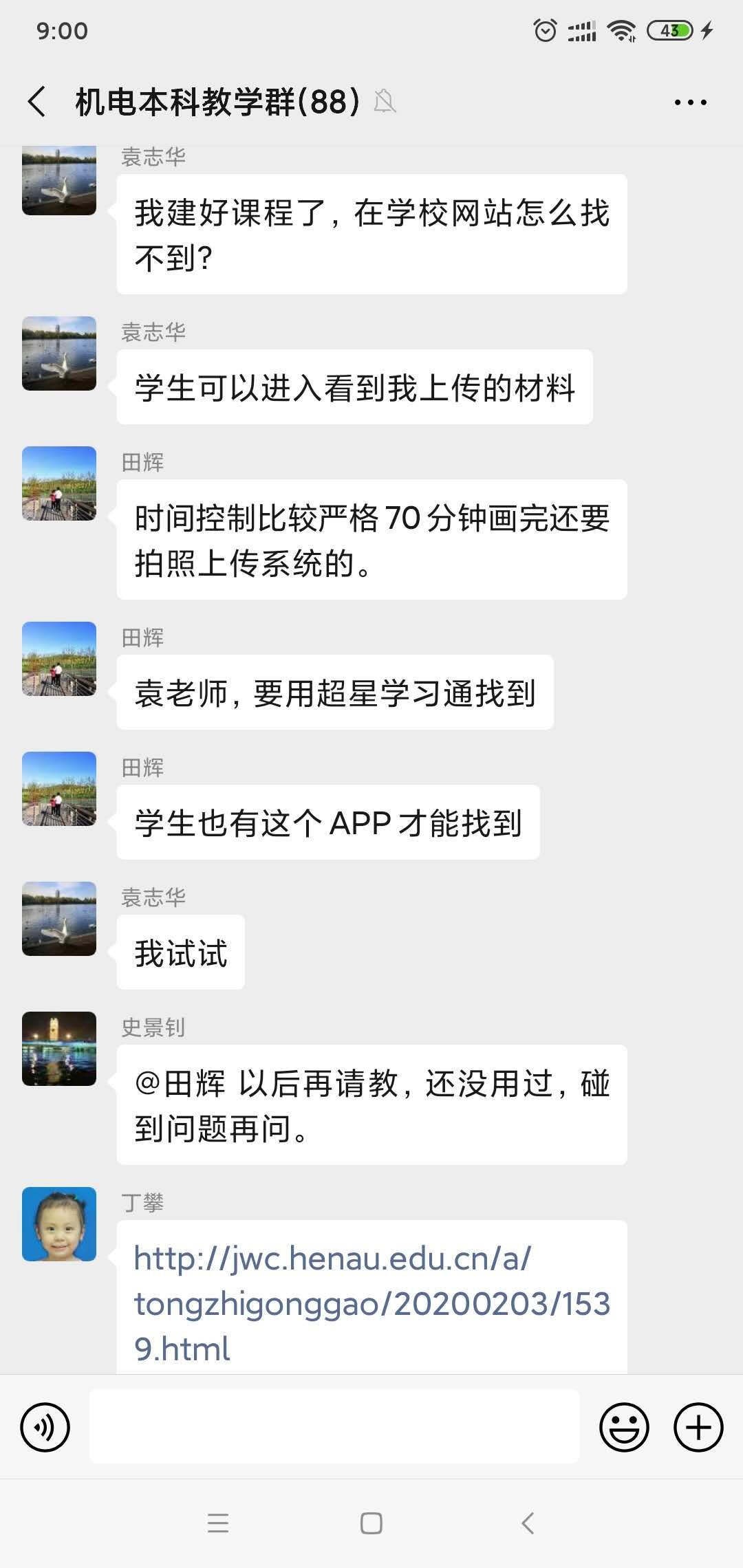 在全国人民众志成城抗击疫情的非常时期,成千上万的白衣战士冲锋陷阵,战斗在抗疫前线,作为人民教师,我们要站好我们的岗位,履行我们的职责!新学期第一天网络授课过程中,尽管存在网络堵塞等各类问题,但老师们坚持不懈,相互分享经验,相互学习,善于创新,克服各种困难,有效保证了教学工作稳步开展。相信我们的非常经历会永远留在我们的记忆里,永远留在学生的记忆里,永远留在我们院的历史上。我们也是在用我们的敬业精神在为取得抗击疫情的胜利做出我们的贡献!老师们,辛苦了!