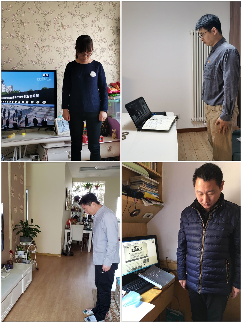 学院领导班子和值班教师4月4日上午于院办会议室开展集体哀悼活动,深切表达对抗疫狙击战中涌现出的一大批逆行出征、敢于担当、无私奉献的人民英雄的致敬之情。各系教师就地准时参与哀悼活动,通过朋友圈发声等多种形式追思烈士。成人小说