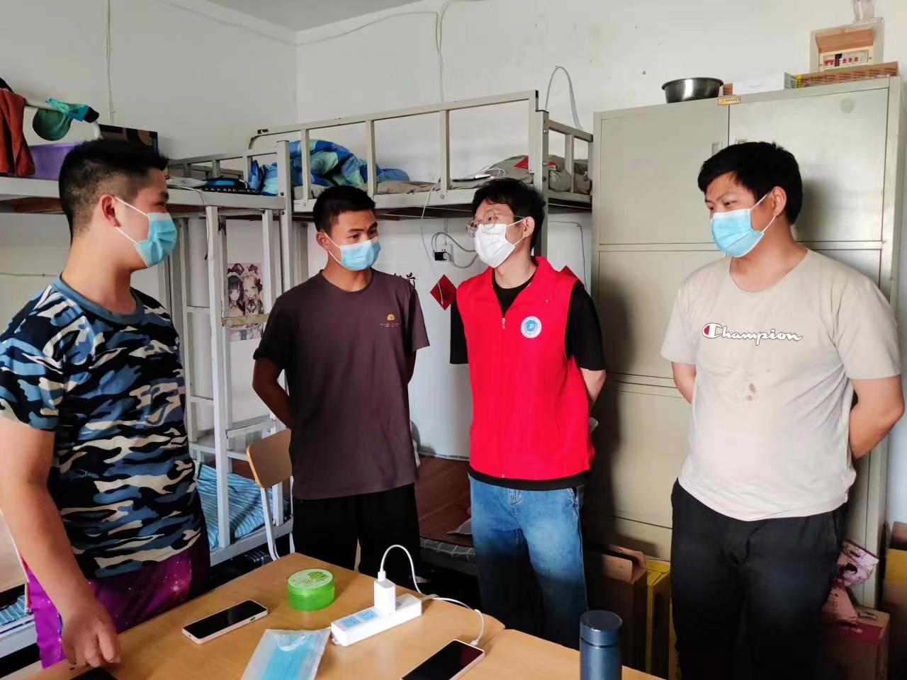 党委副书记赵宁,团委书记黄笑,辅导员王晓楠、徐佳亮、张洋、李鹏飞、吴俊锋前往第二生活区学生公寓开展学生慰问工作。