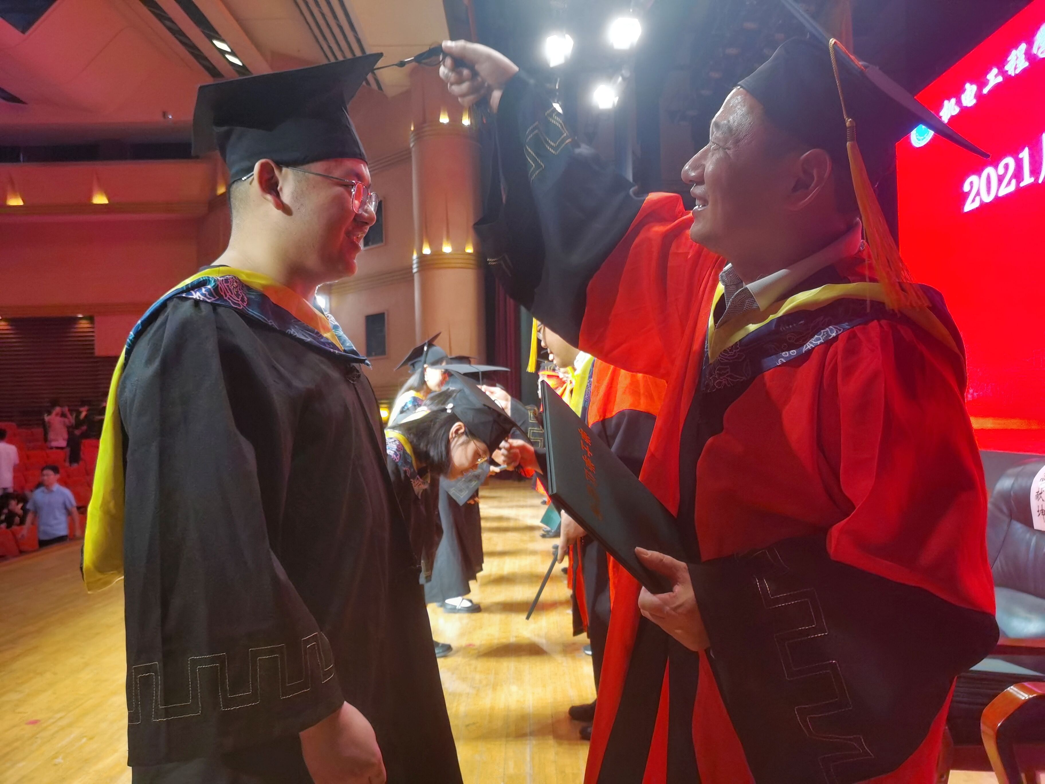 最后,在欢快的《绿色颂》中,与会领导和院学位委员会委员为每一位毕业生扶正流苏、颁发了学位证书,并合影留念。仪式结束后,学院为毕业生发放了各种证件和档案,并办理了离校手续。(文:王晓楠/图:红色火炬工作室)