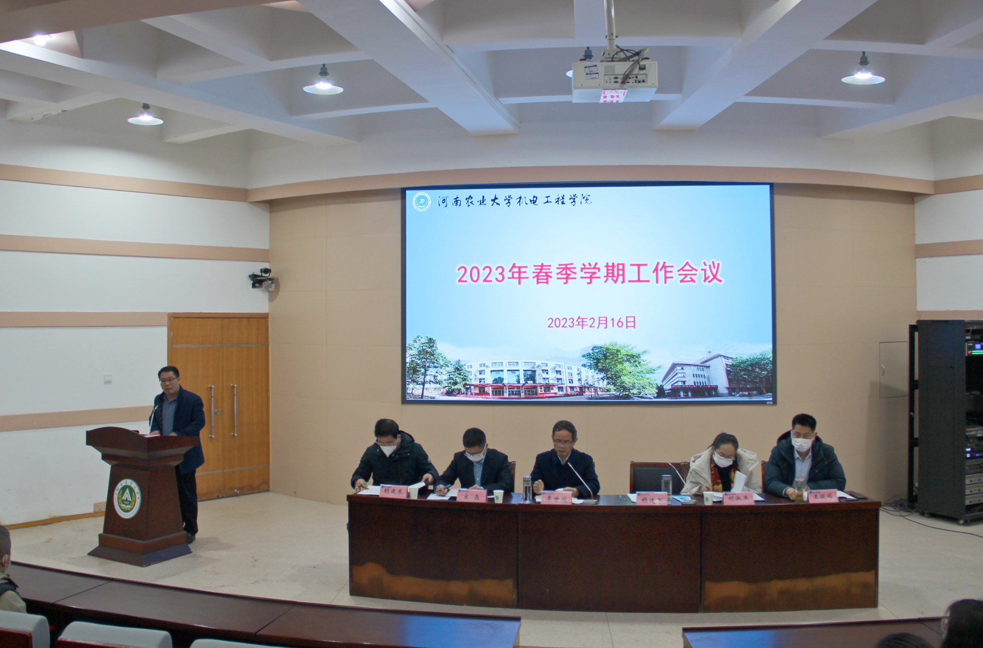 会议上,院长胡建军首先传达了学校近期在学科建设、教学、科研、学生教育、疫情防控等方面的重点工作安排。随后,他又从学科建设、人才培养、专业建设、科研工作、学生工作、就业工作、行政工作等七个方面总结了学院上学期的工作,并对下学期学院在这些方面的工作安排进行了详细的部署。最后,他号召全院教职工认真研读国家和河南省相关文件,统一思想、凝聚共识、明确目标、落实责任,聚焦乡村振兴和“双碳”战略,同向发力、同频共振,抓住农业工程学科入选教育部优先发展学科大机遇,坚持“目标、问题、产出”三个导向,稳步推进学院“十四五”发展规划,建设高素质教师队伍,形成高水平人才培养体系,推动学院各项工作迈上新台阶。