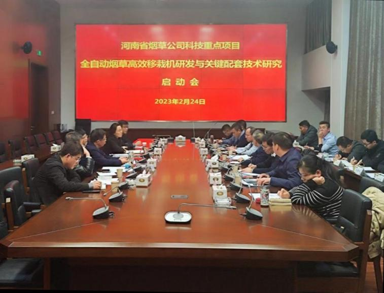 王万章教授牵头主持的河南省烟草公司2023科技重点项目“全自动烟草高效移栽机研发与关键配套技术研究”项目启动会在郑州召开。河南省烟草公司科技处处长李欣蓓、调研员李琦、副处长徐敏、科长何雷等出席会议。学校机电工程教授余泳昌、烟草学院教授刘国顺,洛阳一拖集团高级工程师高海涛等担任项目咨询专家,成人小说