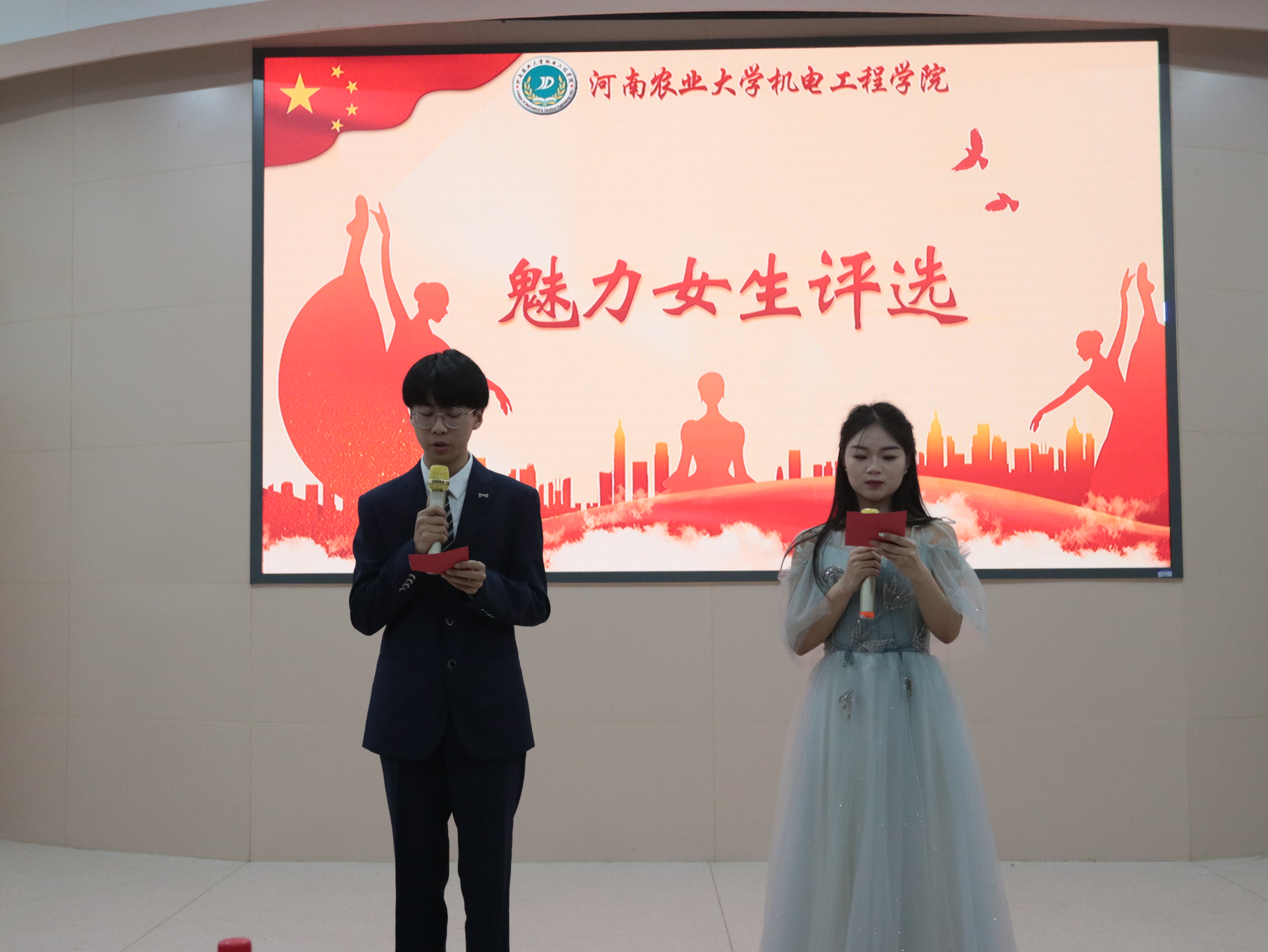 在文化路校区300人报告厅举办第二届“魅力女生”评选活动,院团委书记黄笑、团委副书记王晓楠、胡亭亭,辅导员孙改革和成人小说