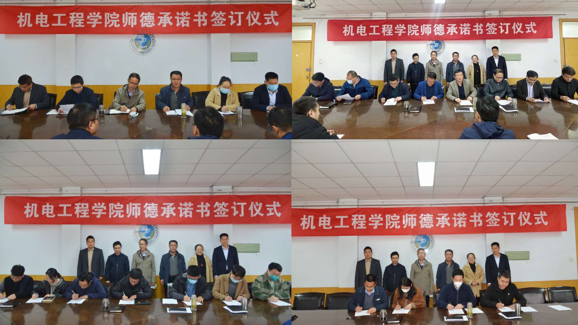 师德承诺书》进行宣读、领学。随后,学院领导班子成员在承诺书上签字,学院各单位主要负责人和教师代表依次在学院领导注视下签字,全院教职工在各单位办公室依次在承诺书上签字。