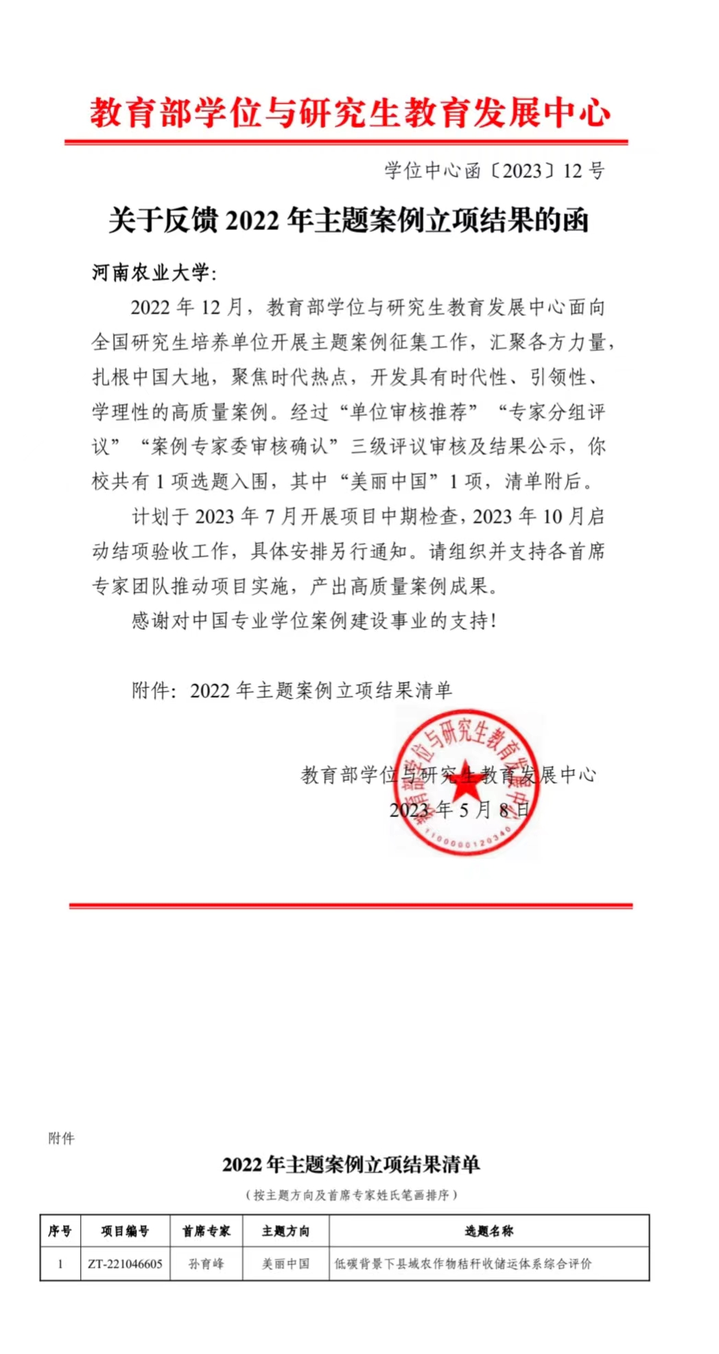 孙育峰副教授申报的案例“低碳背景下县域农作物秸秆收储运体系综合评价”获得立项,为我校唯一获批立项的主题案例。
