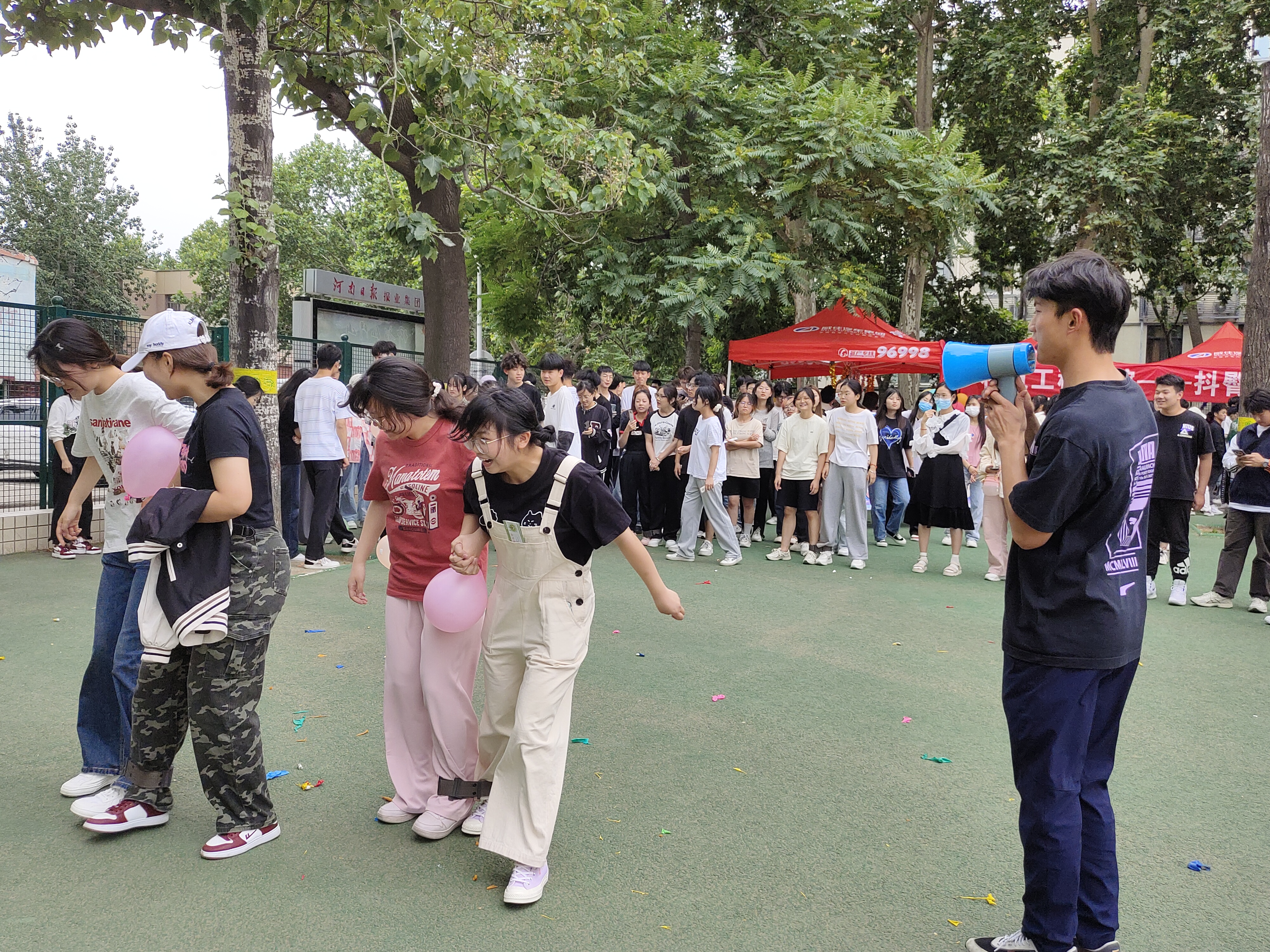 现场,活动正如火如荼地进行。各学院同学积极报名比赛,你争我抢、互不相让的“两人三足踩气球”尽显欢快气氛;抖动臀部、摇摆身体的“抖臀达人”彰显青春活力。大家在欢声笑语中舒展了身心,也在肆意奔跑中释放了压力。