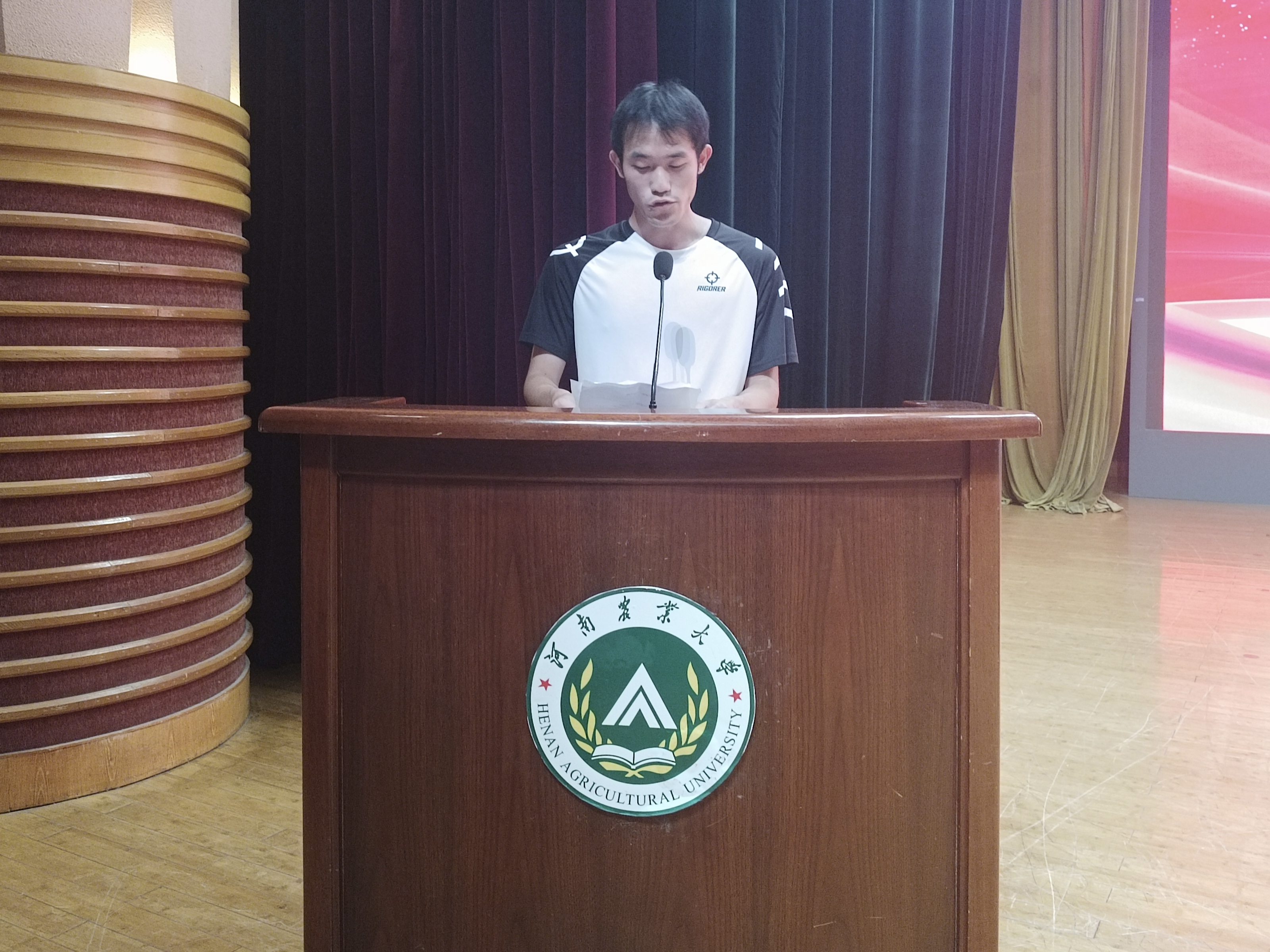 部分受表彰的先进集体与先进个人代表上台发言,他们分别是:就业创业先进集体代表邵龙老师,优秀毕业生代表邓文龙,先进集体代表河南省五四红旗团支部2020级交通运输2班周承博,先进个人代表学生会主席张鹏,优秀运动员代表李帅。