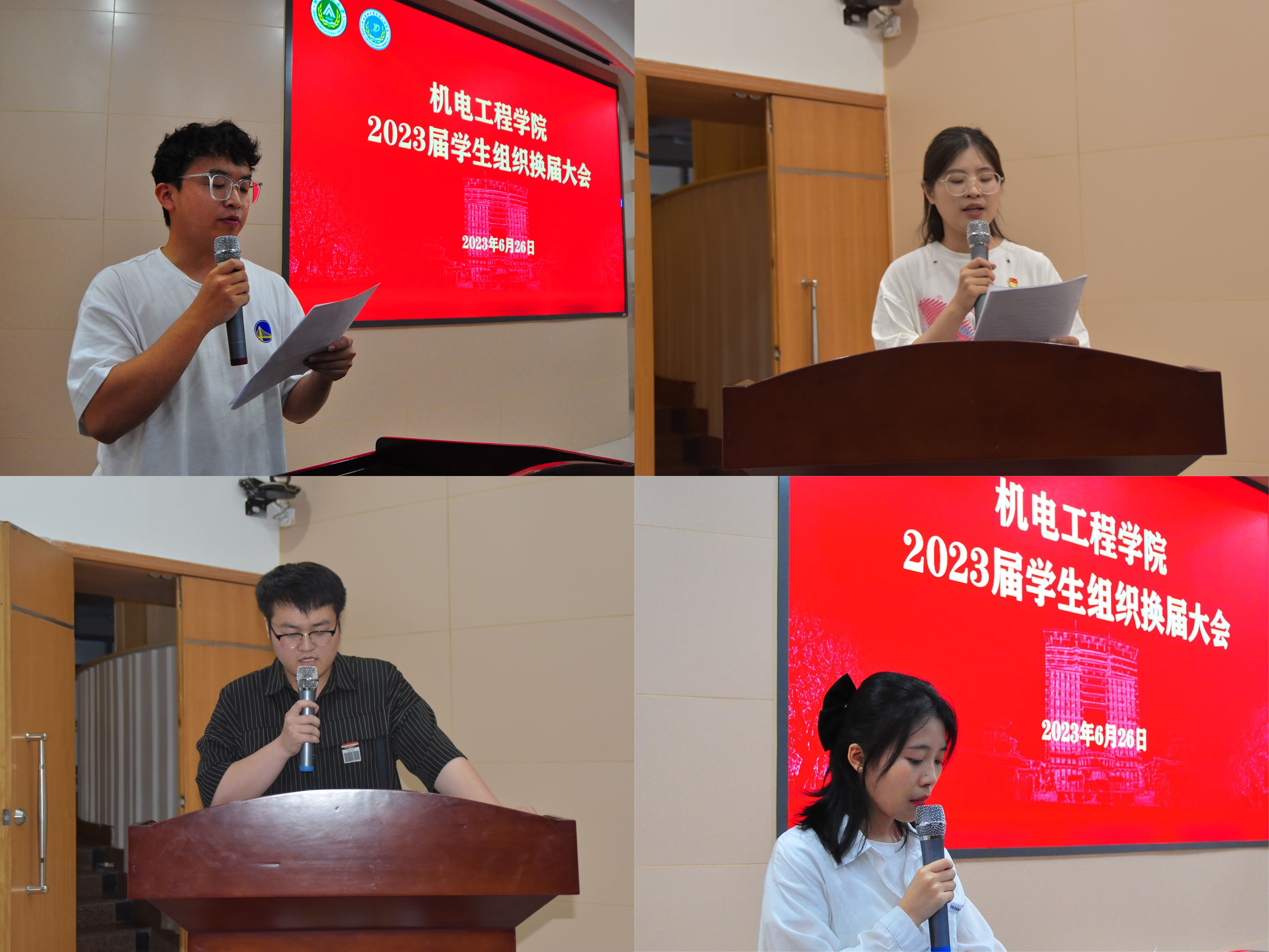 团委办公室主任李炅琦对未来工作进行展望,并表示将时刻紧记"全心全意为同学服务"的工作宗旨;学生党建办公室负责人田永康结合自身工作经历,围绕各组织工作开展情况、工作概述、工作成果等方面内容进行任职演讲;学生会主席范宜卓明确了学生会各部门的职责,提出了自己对于学生干部工作的建议;大学生记者团团长李起俊对记者团各部门未来的工作做出设想,并强调自己会努力带领全体成员担当起作为学生干部的责任。