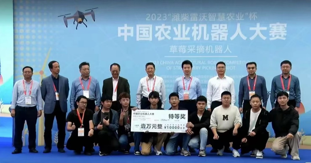 “HAU2”队(队员:李亚辉、董传鑫、李哲和梅超)设计的草莓采摘机器人采用垄上双边采摘策略,底层驱动部分使用高性能微控制器,以驱动机器人进行田间行走;果实识别部分采用自主研发的图像处理算法;果实采摘部分采用自主设计的多功能机械臂,末端搭载高精度的采摘执行机构;收集部分使用仿真软件设计出最优结构的草莓收集仓,以完成对草莓的临时仓储任务,荣获唯一的特等奖。“HAU1”队(队员:盛哲、许雪强、魏涛、徐欢和王有位)设计的草莓采摘机器人采用垄上双边采摘策略,搭载先进的图像识别系统,实现了自主巡线、垄对齐和垄上导航等一系列完整高效的自主视觉导航任务;同时,机器人采用基于视觉的机械臂伺服测控技术和基于机器学习的草莓自动识别技术,实现了对草莓的精准定位和高效采摘,荣获一等奖。“莓你不行”队(队员:王克震、申家宁、刘笑阳、李冠颉和李若石)设计的草莓采摘机器人采用独立设计的机械结构,采摘过程运用机械运动与智慧视觉相结合,对草莓进行精准采摘并放入侧边筐,实现了检测-采摘-收集一体化作业,荣获二等奖。