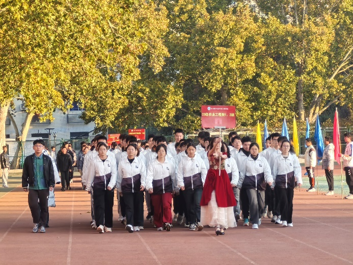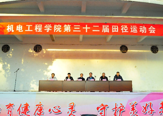 第三十二届田径运动会。院党委书记李世欣,院长胡建军,党委副书记宋晶,副院长刘淑杰、胡建东、王振锋以及团委老师出席开幕式,22级、23级全体同学参加此次运动会。体育学院范玉辉老师担任运动会总裁判长,开幕式由宋晶主持。