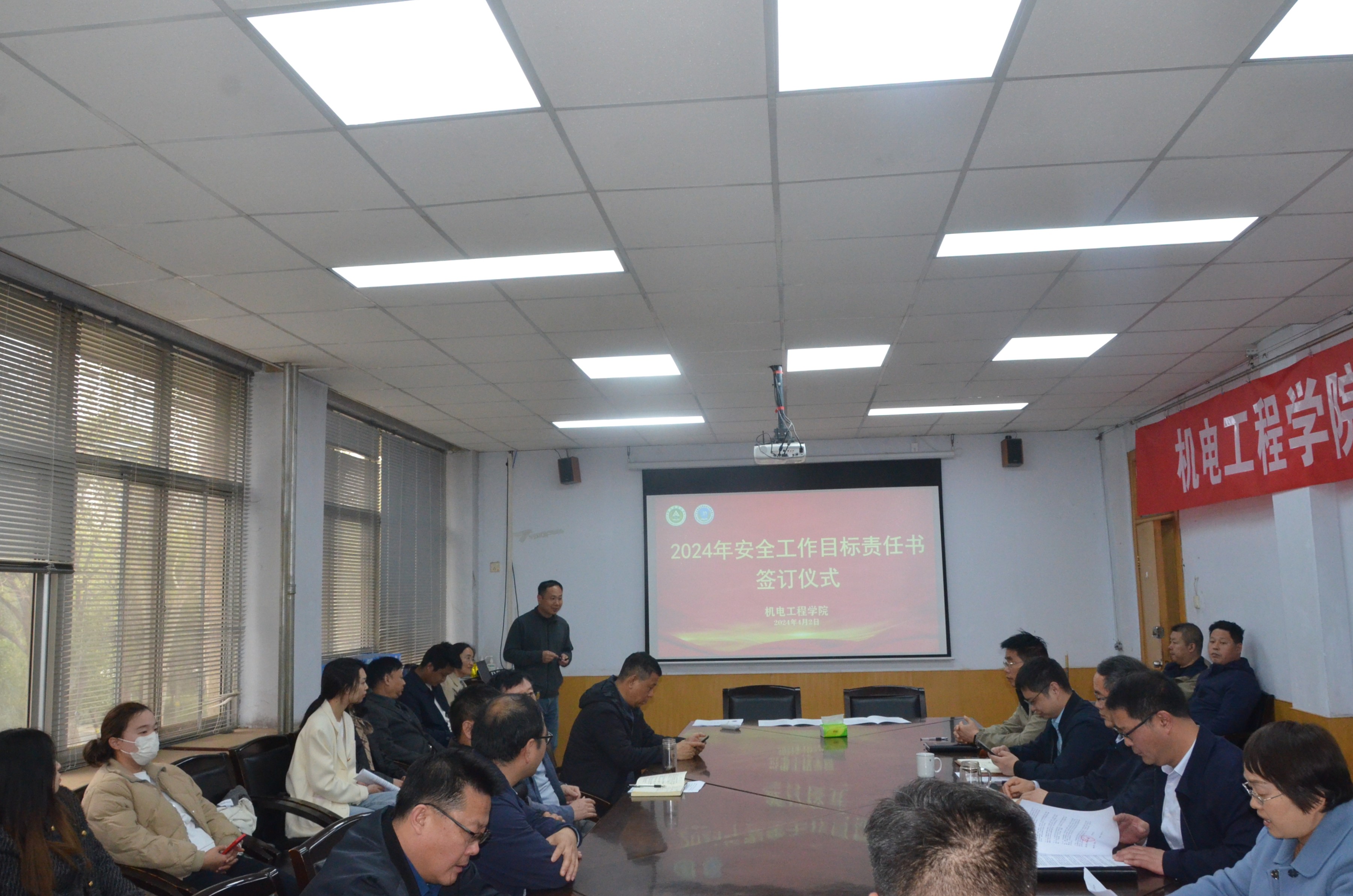2024年度安全工作作动员讲话。她指出,要进一步加强学院安全生产、教学管理,明确安全管理责任,确保学院教学、科研、管理工作的正常秩序,拧紧扣牢各级管理人员责任链条,同时要求全院师生增强责任意识、安全意识,强化过程目标管理,努力营造教育有方、管理有序、防控有力、安全稳定的平安学院。随后,胡建军代表学院与各系、实验中心签订了2024年度《安全目标工作责任书》。