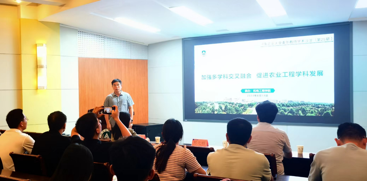 第25期青年教师学术沙龙在文化路校区礼堂100人报告厅举行,沙龙活动主题为“加强多学科交叉融合 促进农业工程学科发展”,旨在通过为青年教师搭建学术交流平台,加深青年教师间的学术交流、促进多学科间的交叉融合、推动农业工程学科内涵式高质量发展。副院长胡建东主持沙龙活动,理学院院长郑先福、资源与环境学院教授刘红恩、农学院教授付志远、各系青年教师代表等参加会议。