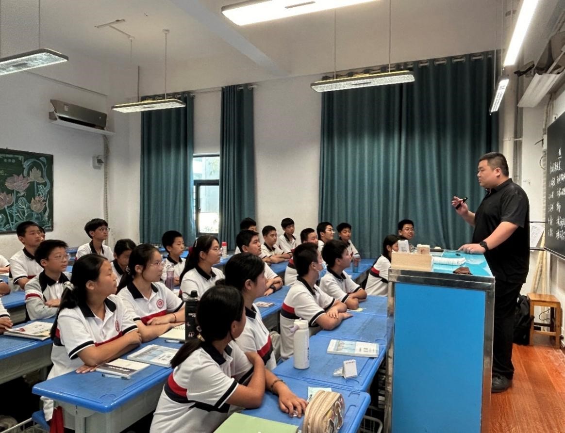 教师崔功佩博士赴附属中学开展了题为“增程式大豆玉米带状复合种植喷杆喷雾机关键技术及应用探索”的科学素养教育报告,30余名七年级学生及相关老师共同参与了本次活动。