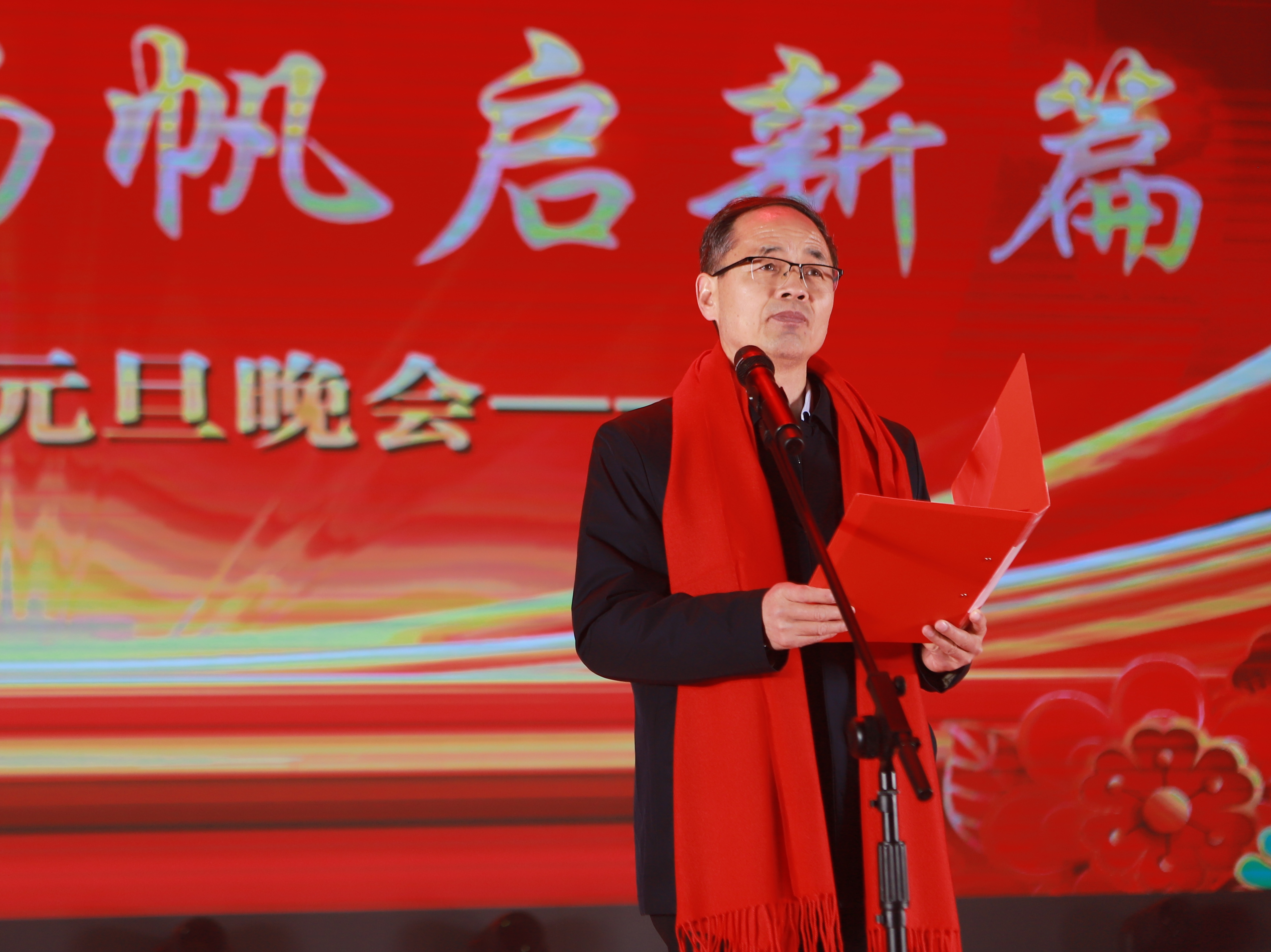 于文化路校区千人大礼堂隆重举办“砥砺笃行向未来,逐梦扬帆启新篇”2025年元旦晚会。此次晚会特邀嘉宾校党委学生工作部部长、学生处处长、武装部部长徐峰老师,副部长张二龙老师,校团委副书记雷雯老师,成人小说