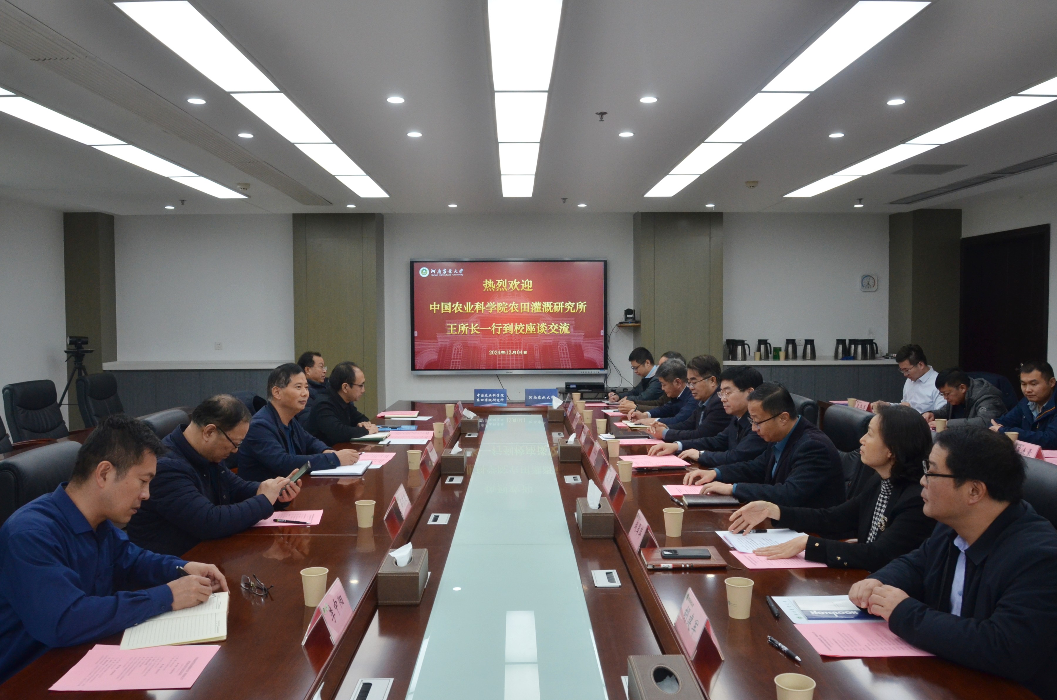 郭战伟对王景雷一行的到来表示欢迎,并对学校发展历史、学科建设及近年来的办学情况作了简要介绍。王景雷介绍了灌溉所发展历程、学科方向、科技创新和成果转化等情况。双方围绕智慧灌溉技术研发应用和高标准农田建设进行了深入交流。