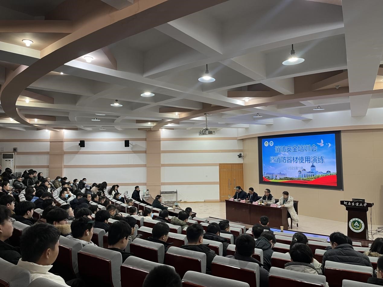 在文化路校区三百人报告厅举办消防安全培训会暨消防器材使用演练活动。保卫处处长刘全军出席会议并讲话。院党委书记李世欣,院长胡建军,院党委副书记宋晶,副院长刘淑杰、胡建东、王振锋,全体师生参加会议。会议由院长胡建军主持。
