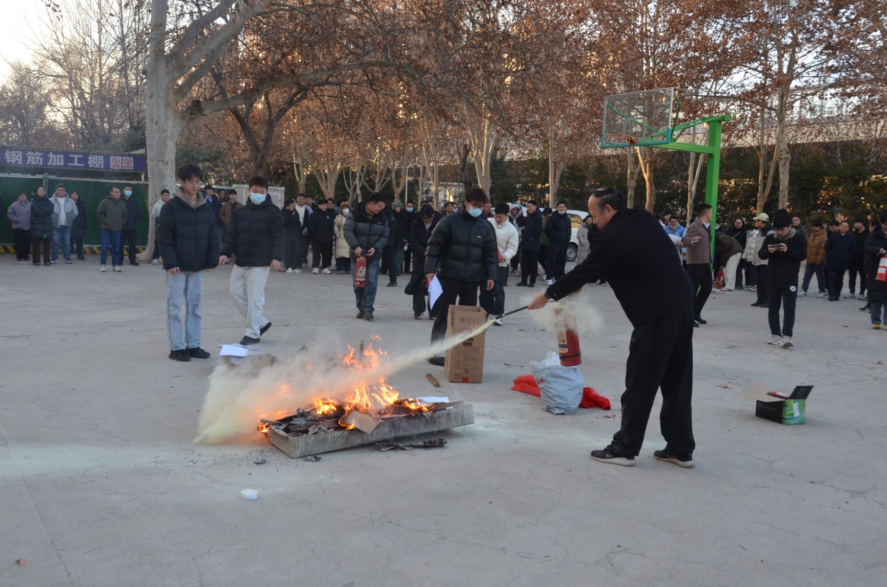 在消防器材使用演练环节,师生们在教员的指导下,亲身体验了灭火器的操作方法。大家按照“一提、二拔、三握、四压”的步骤,依次进行灭火操作,成功扑灭了模拟火源。整个演练过程紧张有序,师生们操作规范,达到了预期的效果。