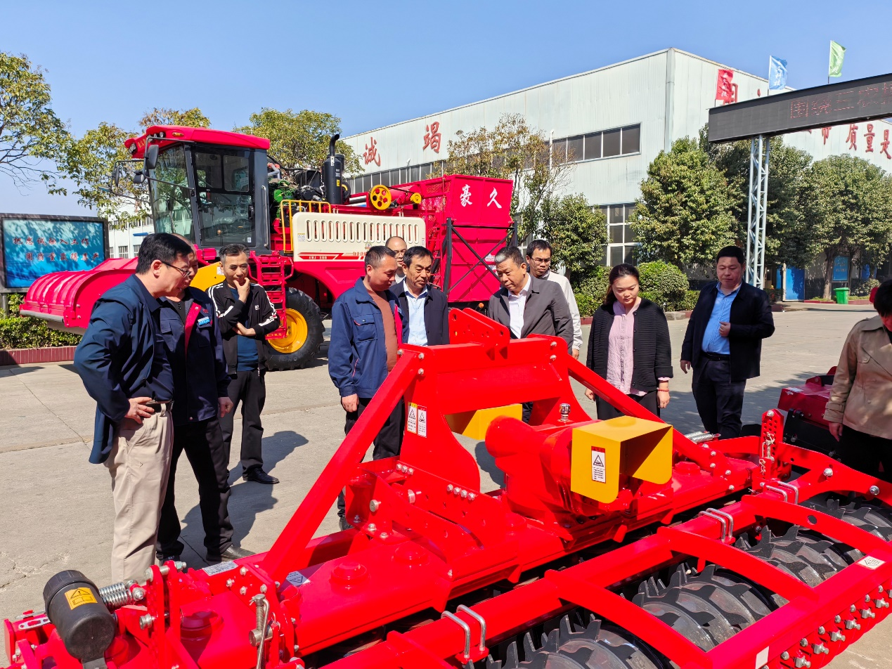 农机团队首先对企业自主研发的旋耕机、旋耕施肥播种机、花生挖掘机、自走式玉米收获机等农机装备进行了现场考察,参观了企业的旋耕机焊接、装配、涂装生产线。企业负责人介绍了公司的发展情况和产品研发情况,双方就产品研发、人才培养、实习就业等进行了深入交流并达成初步共识。