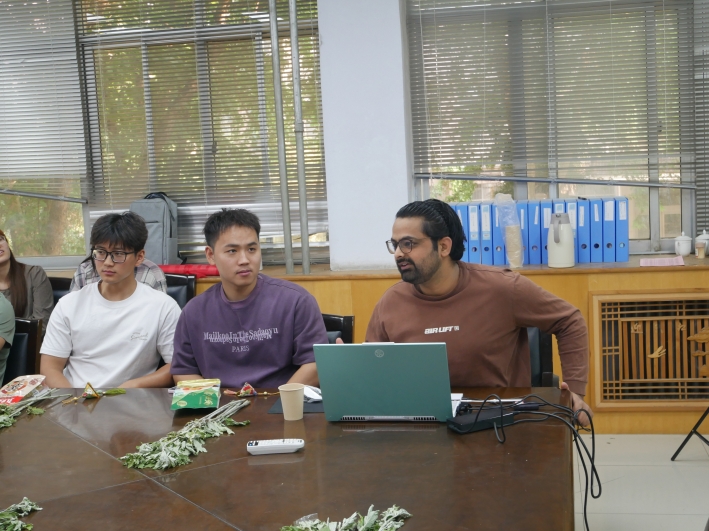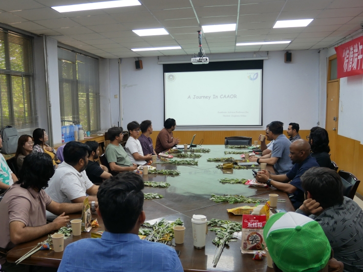 座谈会上,胡建东首先代表学院对全体留学生致以节日问候,随后介绍了端午节的起源、习俗及其蕴含的爱国精神与民族情感。研究生代表展示了吃粽子、赛龙舟、挂香囊等端午节的传统习俗,让留学生们感受中华传统节日的深厚内涵和文化魅力。之后,留学生们纷纷化身 “文化宣讲员”,通过精心制作的 PPT,向大家介绍自己国家的文化,并与在场师生积极畅谈在校学习和生活的感受。