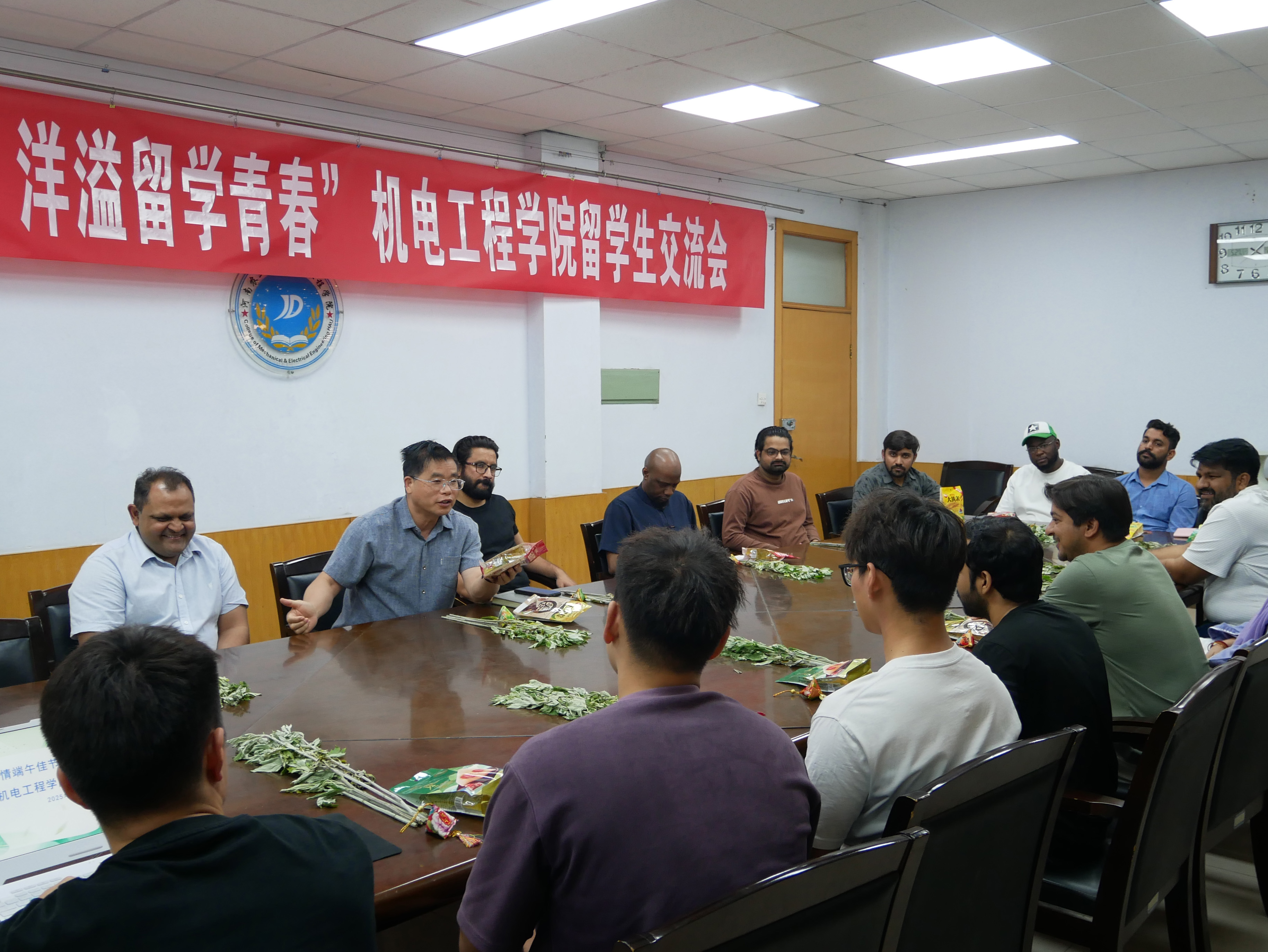 举办 “粽情端午佳节,洋溢留学青春” “粽情端午佳节,洋溢留学青春”留学生端午节文化交流座谈活动。副院长胡建东、能源系外籍教授Nadeem Tahir和留学生、研究生代表参与此次交流座谈活动,活动由胡建东主持。