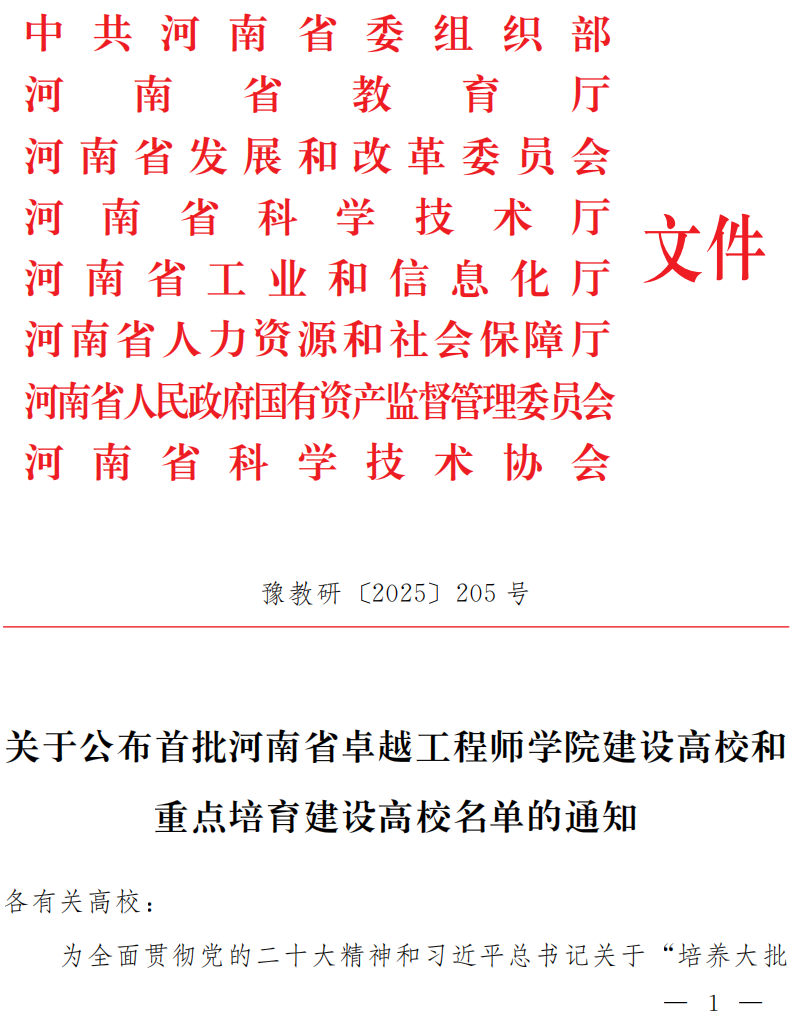 为全面贯彻党的二十大精神和习近平总书记关于“培养大批卓越工程师”的重要批示指示精神,落实立德树人根本任务,大力发展交叉学科,解决专业学位研究生产教融合问题,河南省启动卓越工程师学院建设高校遴选工作。本次全省共遴选5所高校作为建设单位,4所高校作为重点培育建设单位,学校此次入选是对我校工程技术人才培养质量、服务国家及河南省战略能力的充分认可。