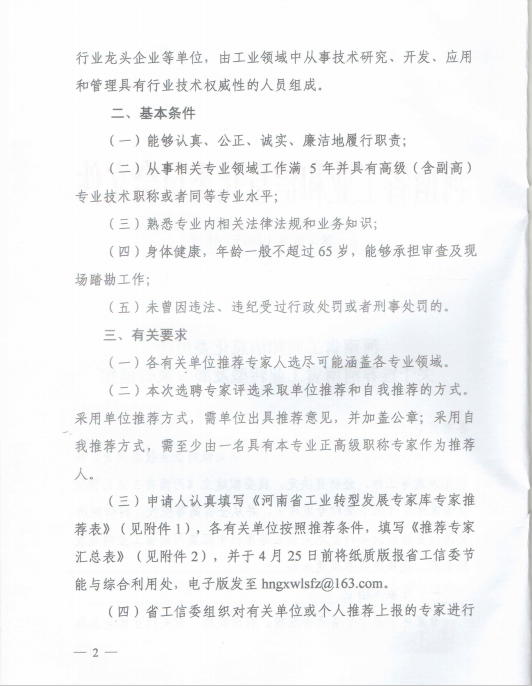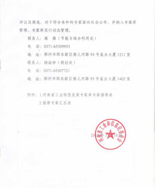 为加快推动我省工业转型升级,切实做好企业技术改造、绿色化改造等工作,河南省工业和信息化委员会现征集河南省工业转型发展专家。请申报的老师于4月23日前报送《