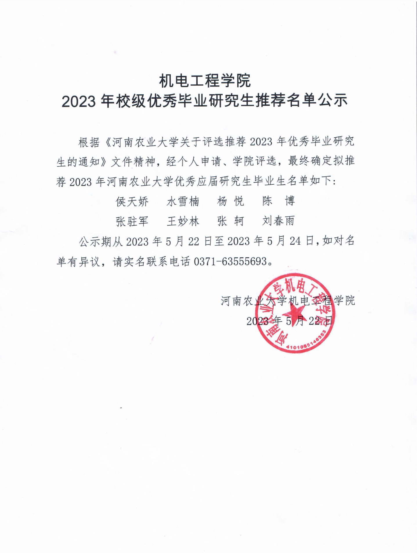 成人小说 2023年校级优秀毕业研究生推荐名单公示