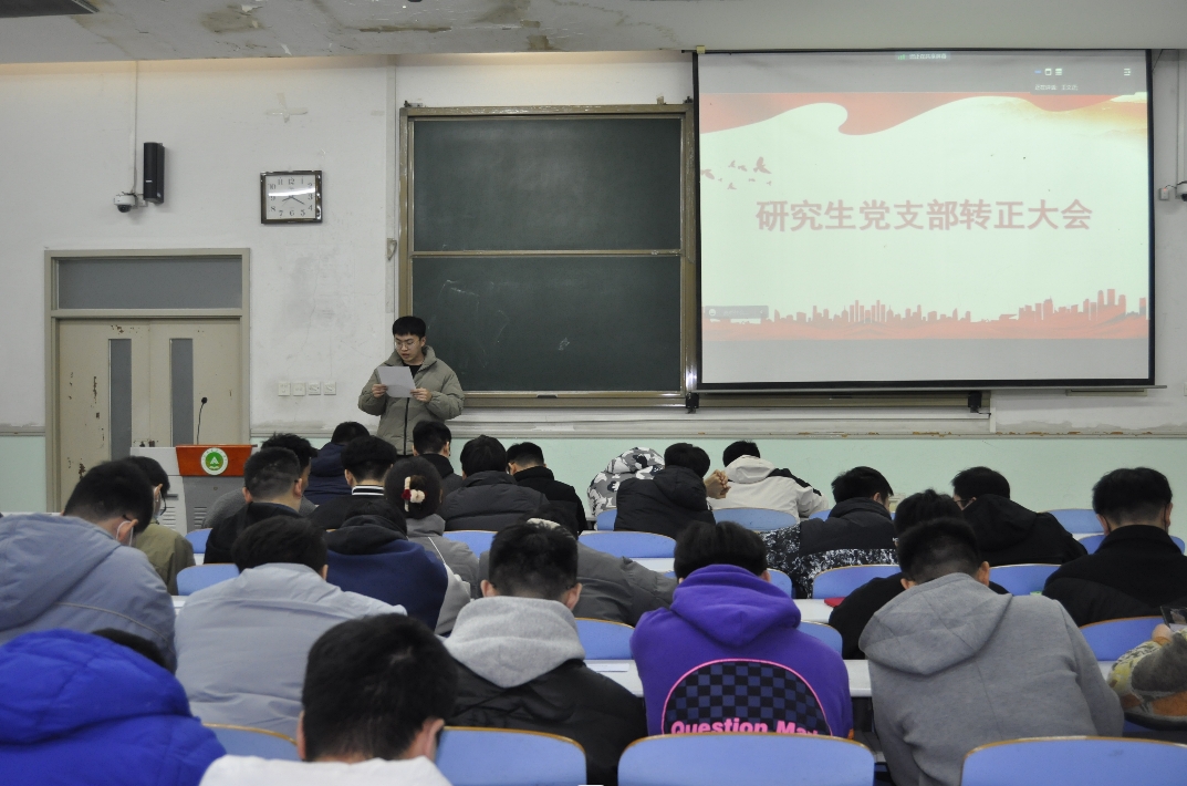 研究生党支部于文化路校区工程楼207教室召开预备党员接收大会暨预备党员转正大会。本次大会由研究生第一党支部书记李锦主持,研究生党支部应到正式党员103名,实到82名,对熊亚妮同志等10名发展对象接收为预备党员与陈湘林同志等8名预备党员转正成为正式党员进行讨论和表决。