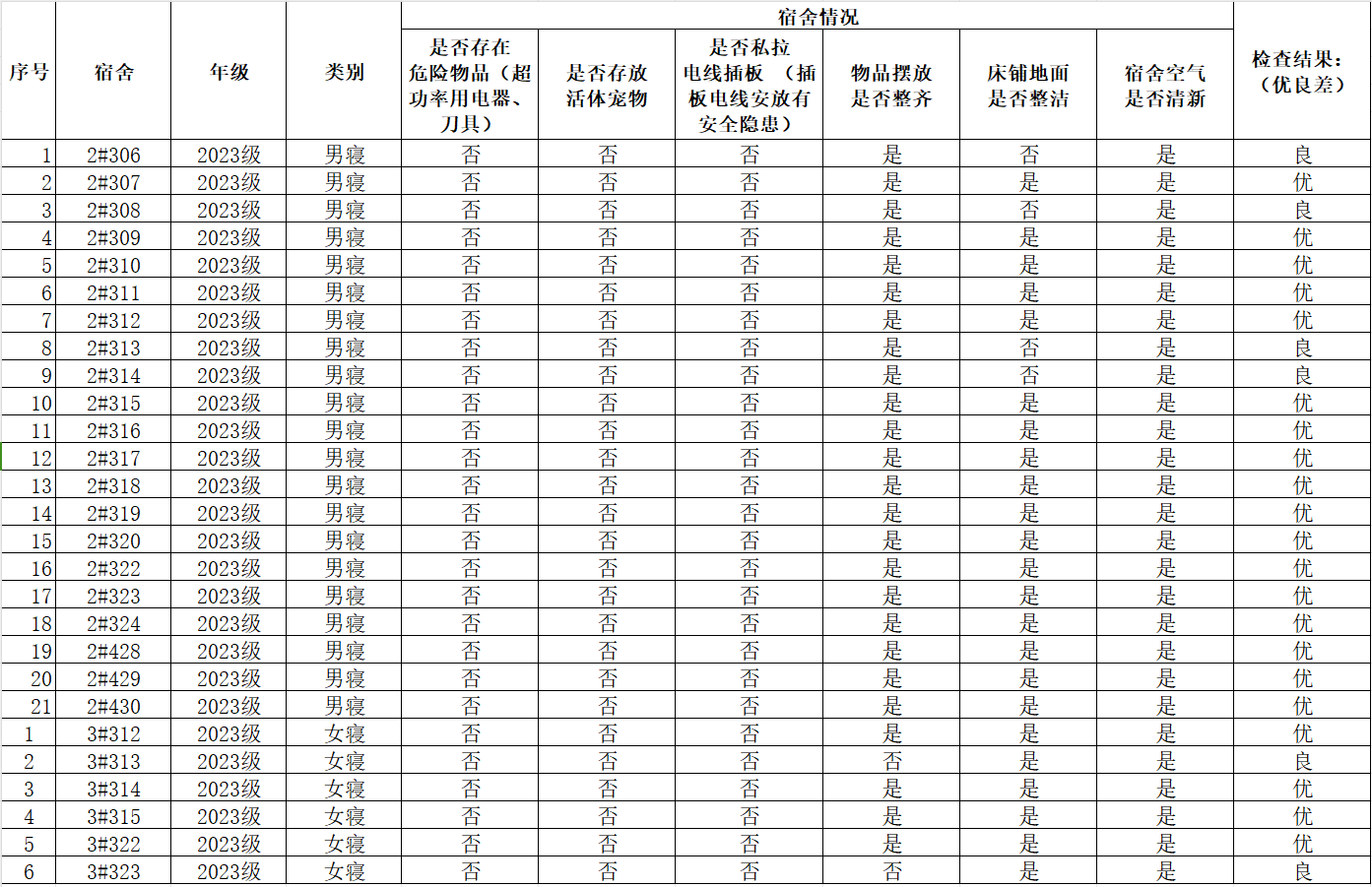 学院研究生会生活部对23级宿舍卫生安全检查情况公示如下: