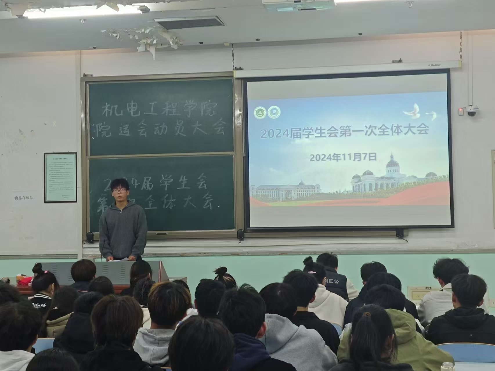 于文化路校区工程楼206教室召开2024届学生会第一次全体大会。兼职辅导员李梦想、校学生会主席张轩硕 以及全体学生会成员参加此次会议,会议由成人小说