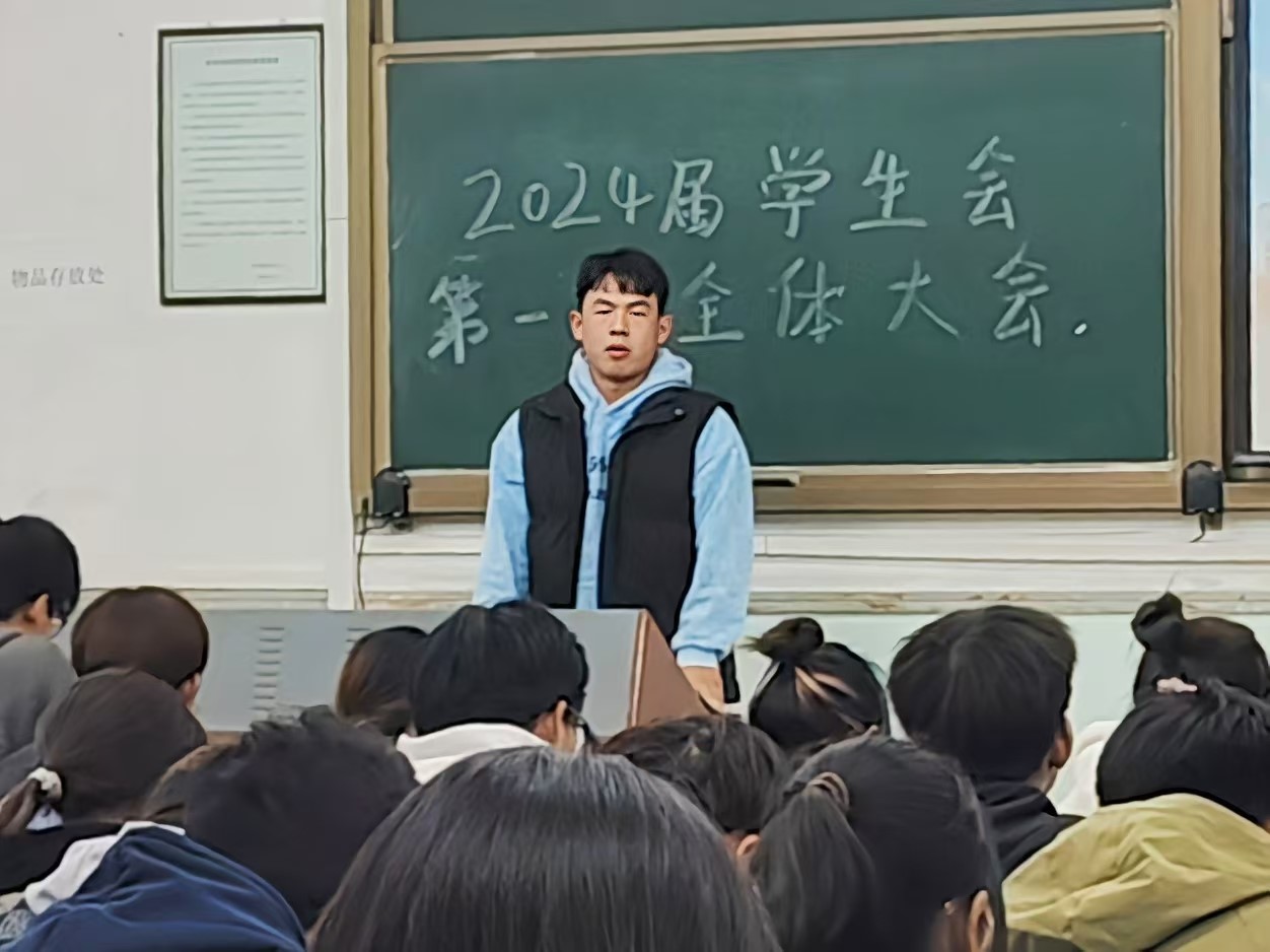 学生会主席邹家华进行了总结发言。他强调了工作态度的重要性,呼吁各部门间高效协作、不忘初心、奋勇向前。他特别指出,“学生干部先学生后干部”,学习是首要任务,不能因工作而忽视学业。他叮嘱大家将干部身份化为学习动力和压力,保持良好的工作态度和作风。