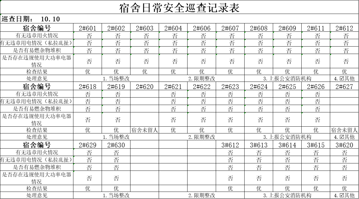 10月10日研究生宿舍卫生安全检查情况公示