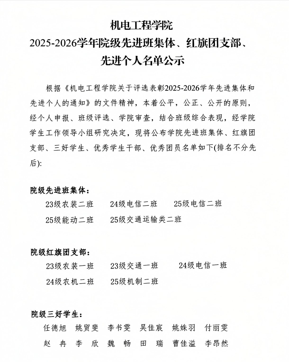 成人小说 2025-2026学年院级先进班集体、红旗团支部、先进个人名单公示
