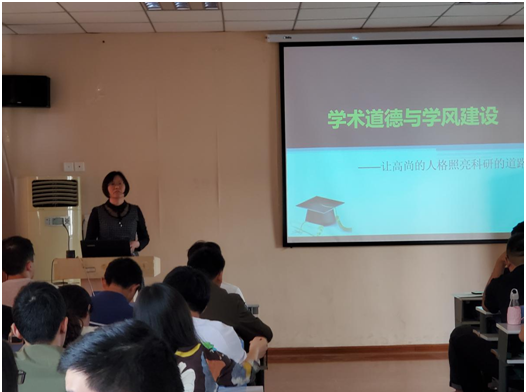 科学道德与学风建设宣讲团成员、硕士研究生导师袁志华教授做了主题为“让高尚的人格照亮科研的道路”的宣讲报告,学院全体研究生新生聆听了报告。