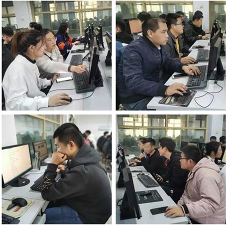 考试在学院机房进行。全体学生在规定的时间里认真思考、积极答题,不时就相关知识点进行讨论,现场气氛紧张而热烈。最终,全体学生均通过了考试,其中,47%的同学达到了优秀水平。