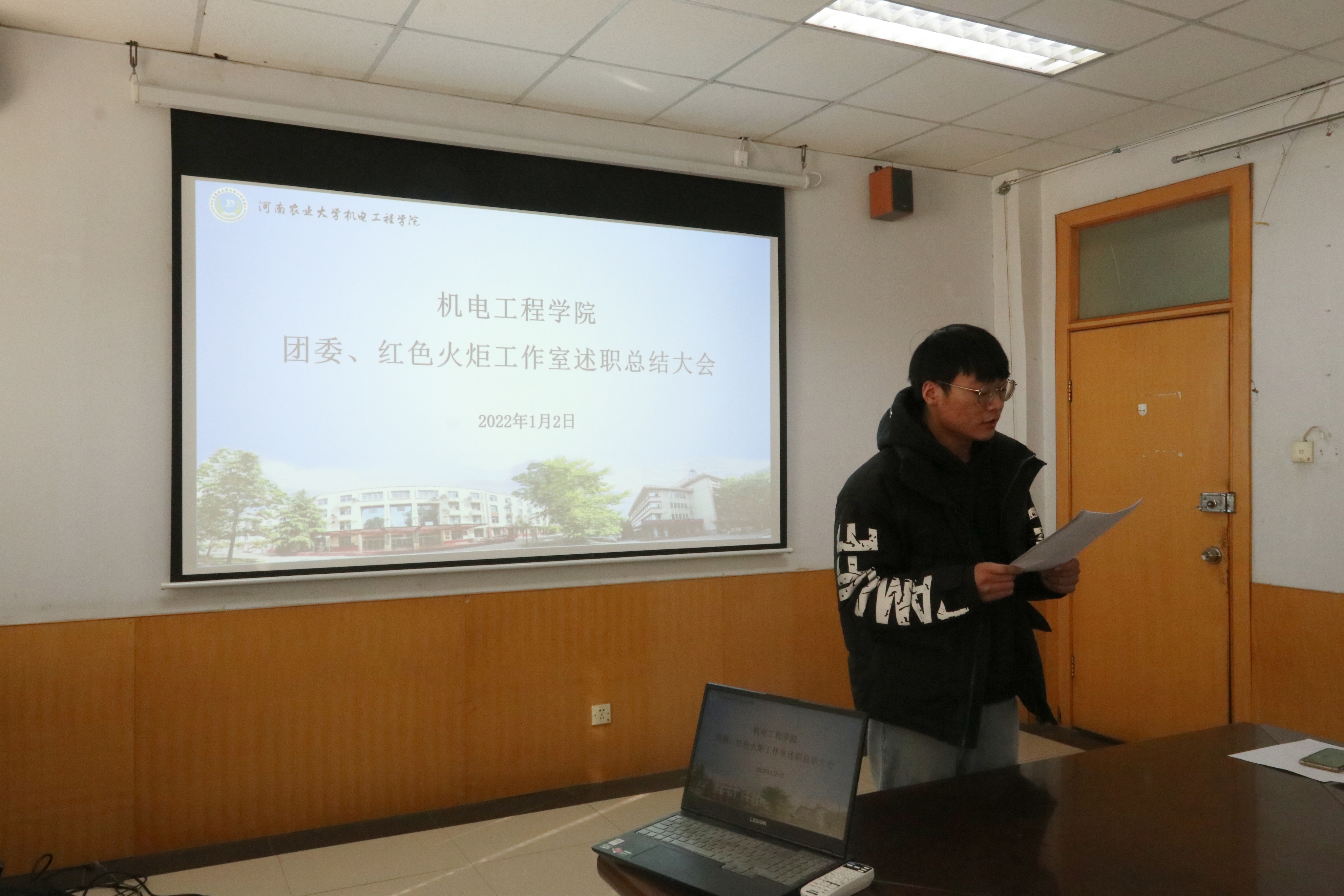 于文化路校区15号楼会议室顺利召开团委、红色火炬工作室述职总结大会,院团委书记黄笑,团委副书记徐捧丽,年级辅导员王晓楠出席本次会议,2021届院团委、红色火炬工作室成员参加会议。