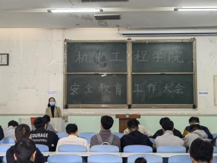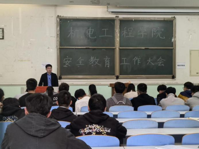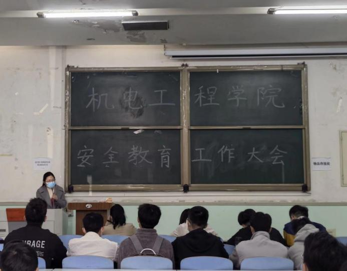 于文化路校区工程楼102教室召开安全教育工作大会,院团委书记黄笑,团委副书记徐捧丽,年级辅导员胡亭亭、王晓楠出席本次会议,全体班长支书参加会议。